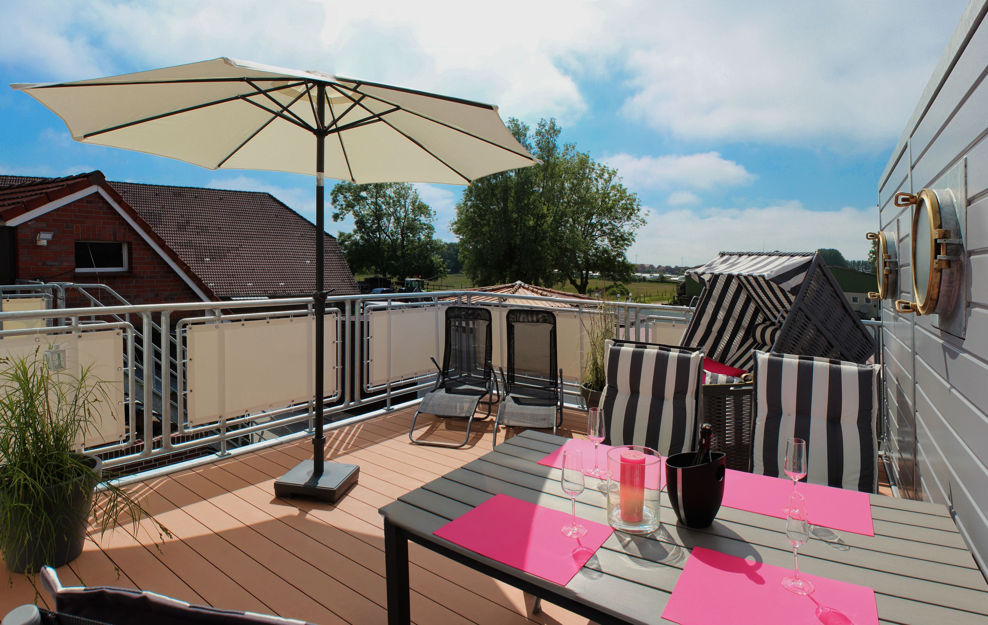 Unseren Gästen ein perfektes Ambiente für einen erholsamen Urlaub zu bieten, ist unser Anspruch. Erleben Sie gemütliche Kaminabende im Wohnzimmer, die wohltuende Wärme der Infrarotsauna oder ein Sonnenbad im XXL-Strandkorb auf der großzügigen Terrasse. Kostenfreies W-Lan ist für uns ebenso selbstverständlich wie bezogene Betten, ein kostenfreies Wäschepaket inklusive Dusch- und Handtüchern und ein reservierter Parkplatz. Als Gäste unseres Hauses erhalten Sie zudem Freikarten für den historischen Seitenraddampfer Concordia II, der in der Saison im Pendelverkehr auf der Harle zwischen dem historischen Museumshafen und dem Yachthafen von Harlesiel fährt.