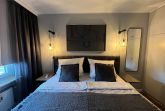 Das Schlafzimmer verfügt über ein geräumigen Kleiderschrank, ein hochwertiges Boxspringbett und einen weiteren Fernseher. Ein Verdunkelungsrollo sorgt für einen erholsamen Schlaf.