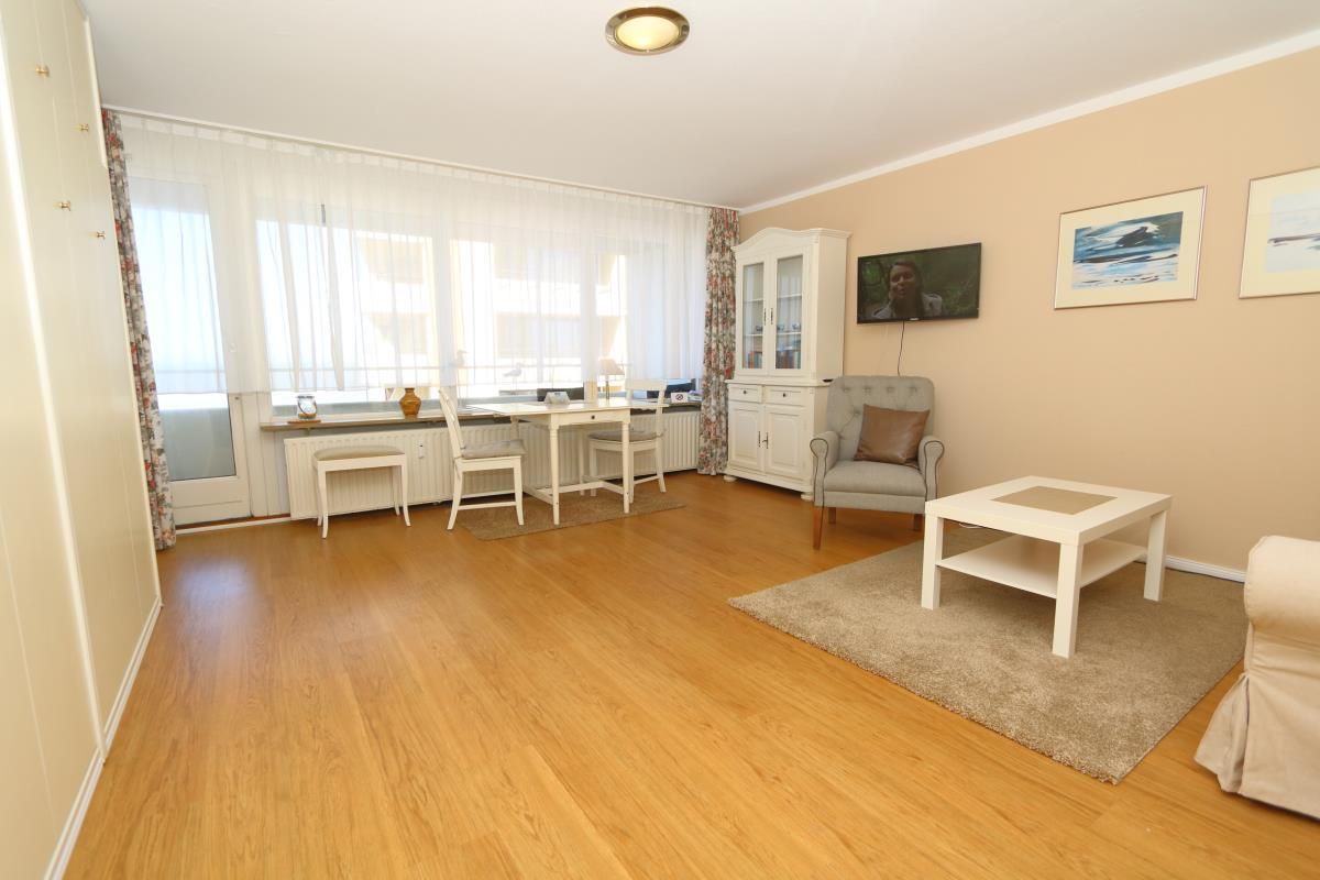 Lage: Das Appartement mit Westbalkon und eingeschränktem Meerblick über das Flachdach befindet sich in der 5. Etage eines gepflegten Appartementhauses im Kurzentrum, direkt am Hauptstrand. Das Haus liegt zentral in Westerland, zwischen den beiden großen Fußgängerzonen.