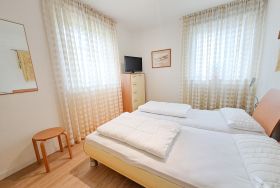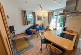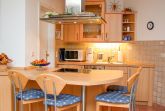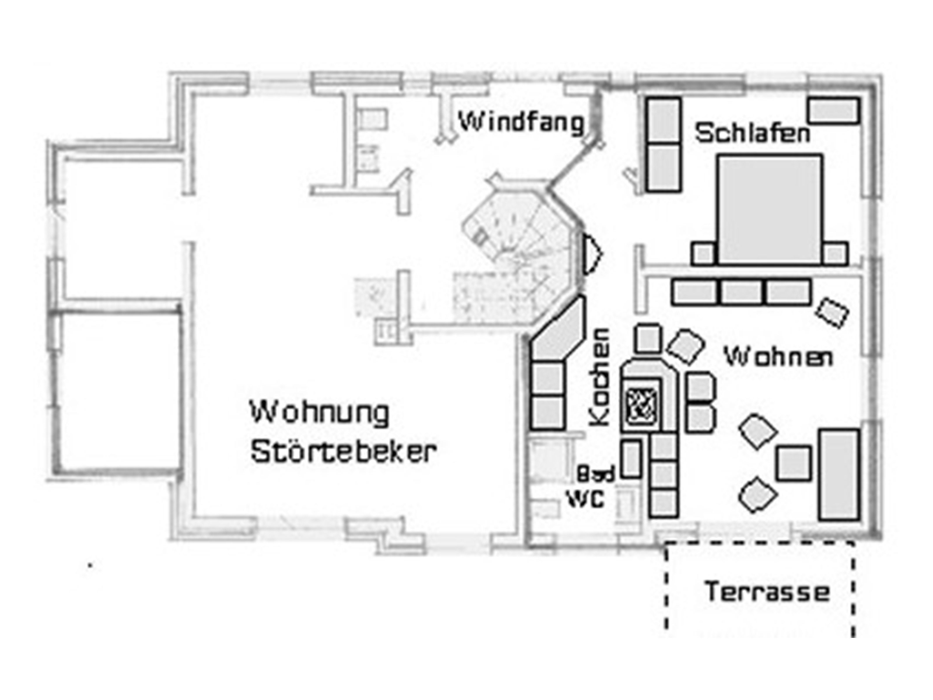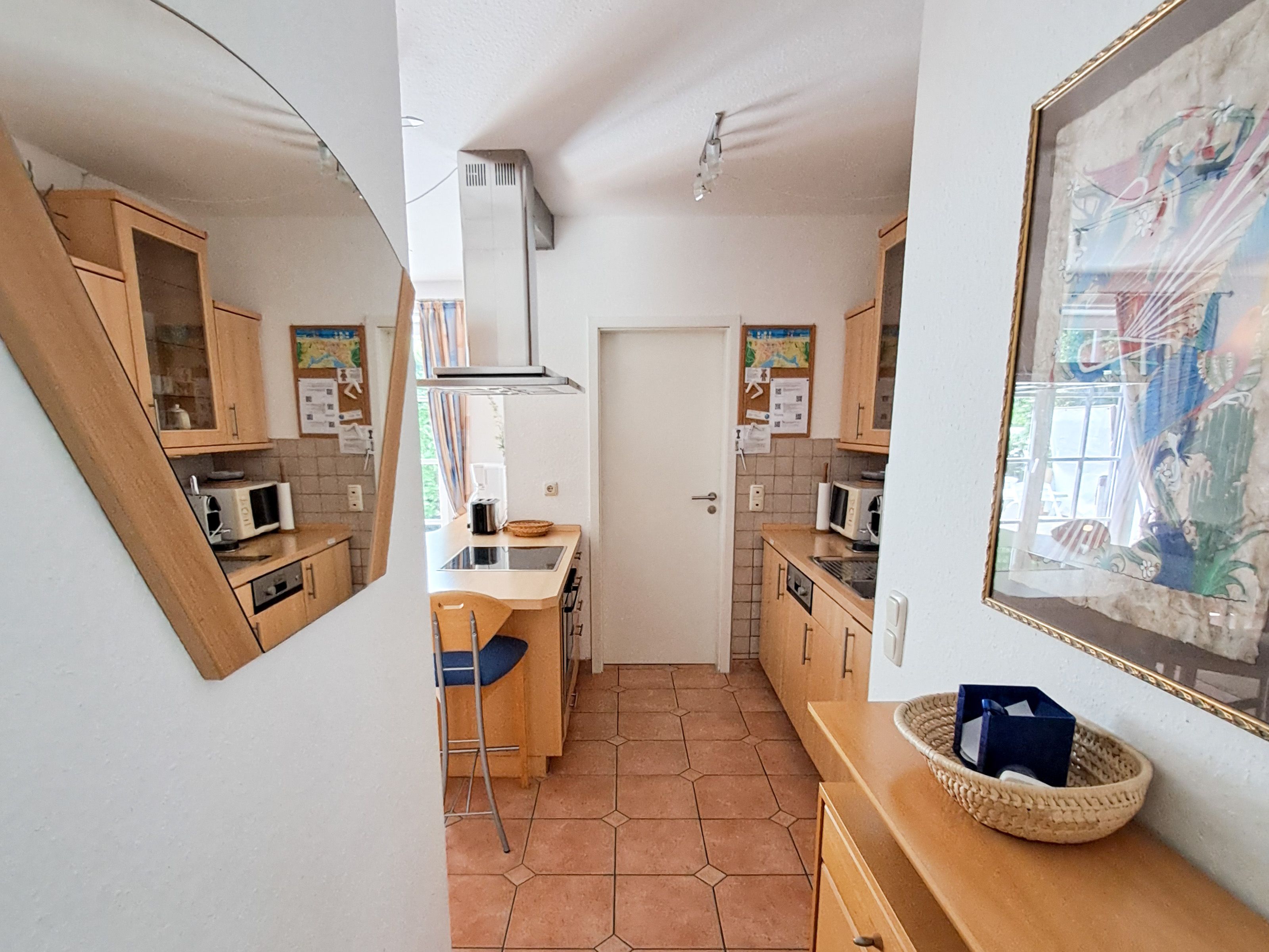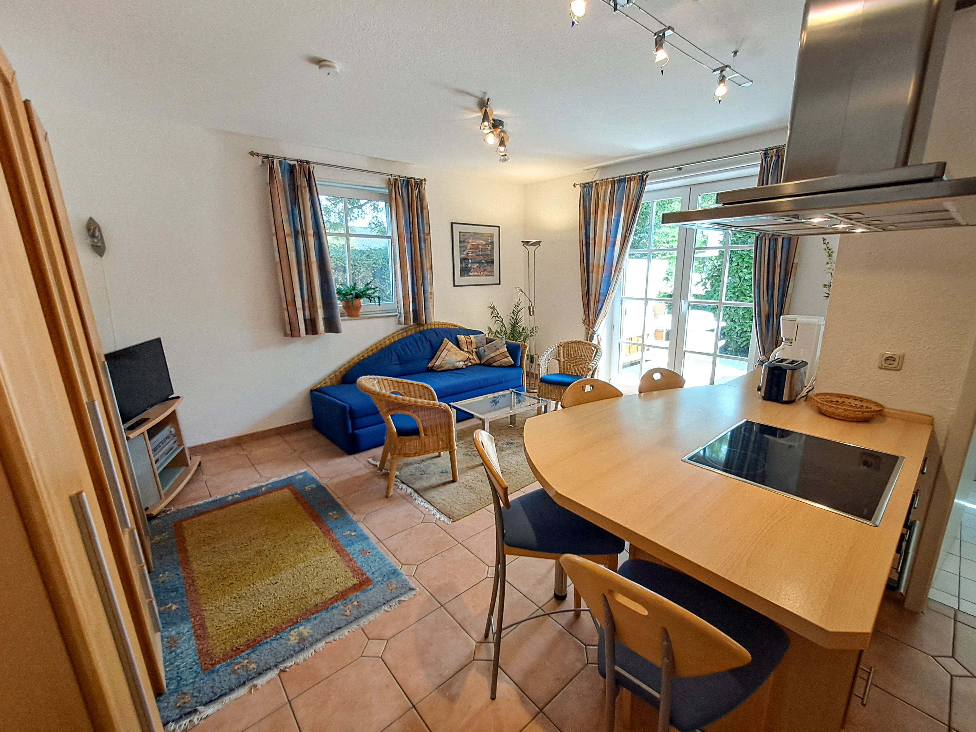 Die Ferienwohnung Seewolf bietet mit ihren 45 m² ausreichend Platz für 2 Personen und ein Kleinkind bis 3 Jahre. Das Schlafzimmer mit einem Doppelbett (160x200; getrennte Matratzen) verspricht dir erholsame Nächte und bietet einen geräumigen Kleiderschrank sowie einen TV für entspannte Abende. Im Wohnzimmer lädt ein gemütliches Sofa zum Verweilen ein, während ein weiterer TV für Unterhaltung sorgt. Die offene Küche ist mit einem Backofen, Geschirrspüler, Kühlschrank, Toaster und einer Mikrowelle sowie Kaffeemaschine ausgestattet und ermöglicht gemeinsame Kochabende oder entspannte Frühstücke am Küchentresen. Ein Bad mit Dusche und WC sorgt für Komfort und Privatsphäre während deines Aufenthalts. Der Flur begrüßt dich mit einer Garderobe und einem Spiegel und die Fußbodenheizung verbreitet zu jeder Jahreszeit angenehme Wärme. Auf der Terrasse kannst du dich im Strandkorb zurücklehnen und ein Buch lesen, den Grill für einen BBQ-Abend anwerfen oder unter der Markise mit weiteren Sitzmöglichkeiten ein schattiges Plätzchen finden.