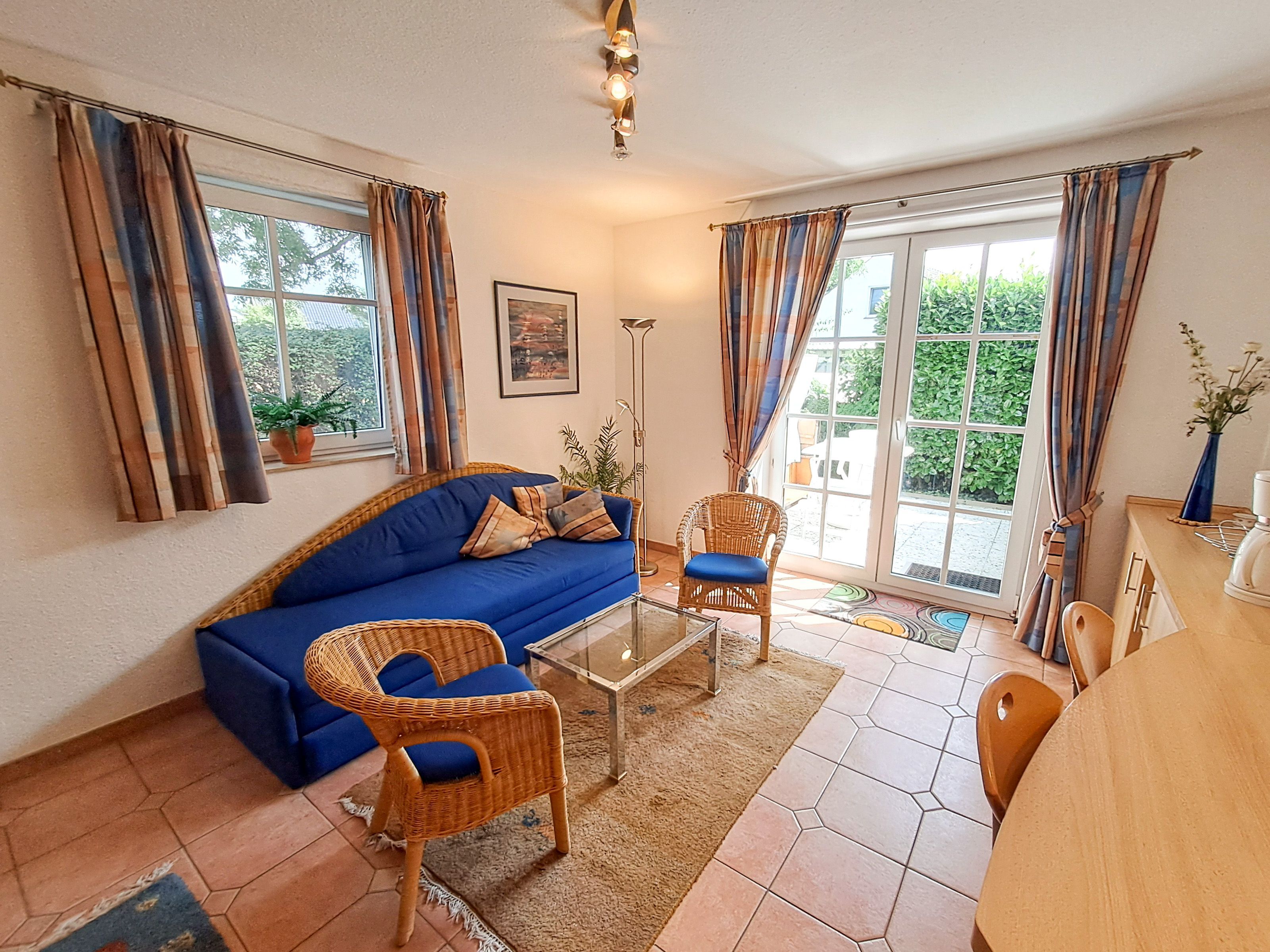 Die Ferienwohnung Seewolf bietet dir und einer Begleitperson auf 45 m² ausreichend Platz für einen erholsamen Urlaub in Zingst. Diese Wohnung ist eine von zwei Ferienwohnungen im Haus Boddenhäusla und verfügt über einen separaten Eingang für maximale Privatsphäre. Ein Schlafzimmer mit einem gemütlichen Doppelbett erwartet dich für erholsame Nächte. Das Wohnzimmer lädt mit einem komfortablen Sofa zum Verweilen ein und ist mit einem TV und einer offenen Küche ausgestattet, die alles bietet, was das Herz begehrt. Genieße gemeinsame Kochabende mit einem Glas Wein am Küchentresen oder entspanne dich vor dem TV nach einem Tag voller Erkundungen. Die Fußbodenheizung sorgt dabei stets für angenehme Wärme, egal zu welcher Jahreszeit. Auf der Terrasse kannst du dich in einem Strandkorb entspannen, einen Grillabend veranstalten oder unter der Markise Schatten finden. Ein Parkplatz sowie ein Fahrradständer steht für dich am Haus zur Verfügung. Und das Beste: Auch dein Hund ist hier herzlich willkommen!