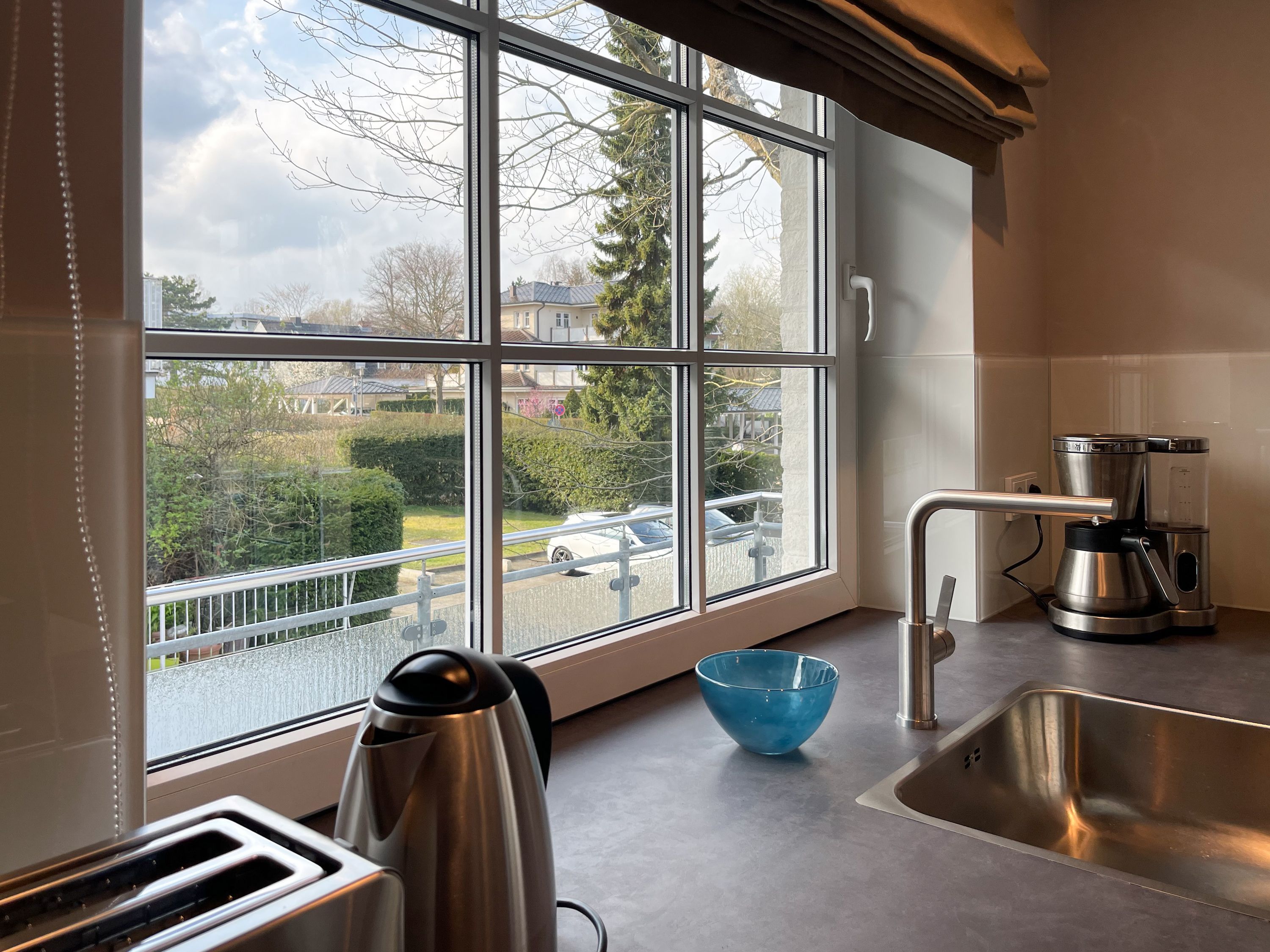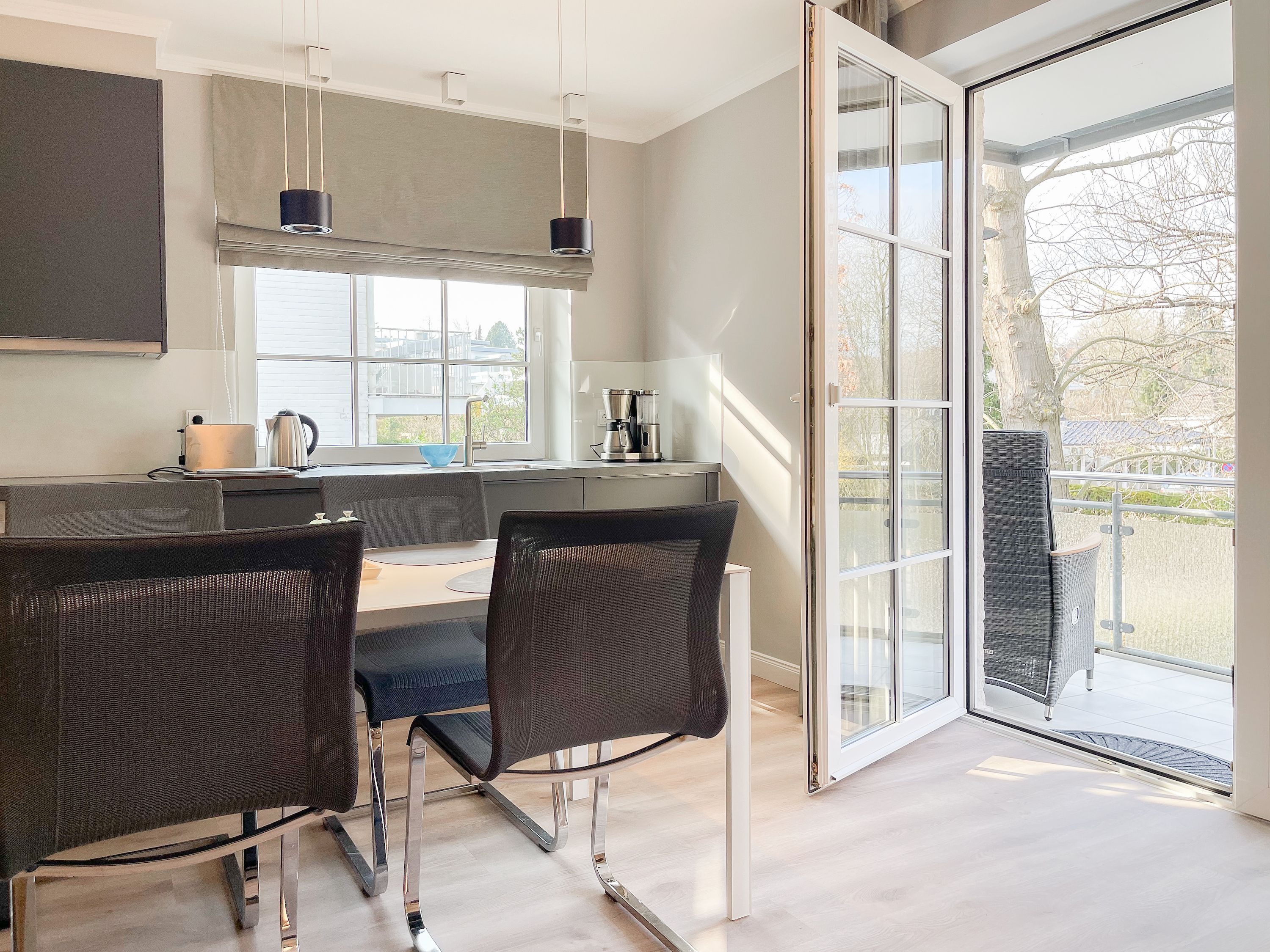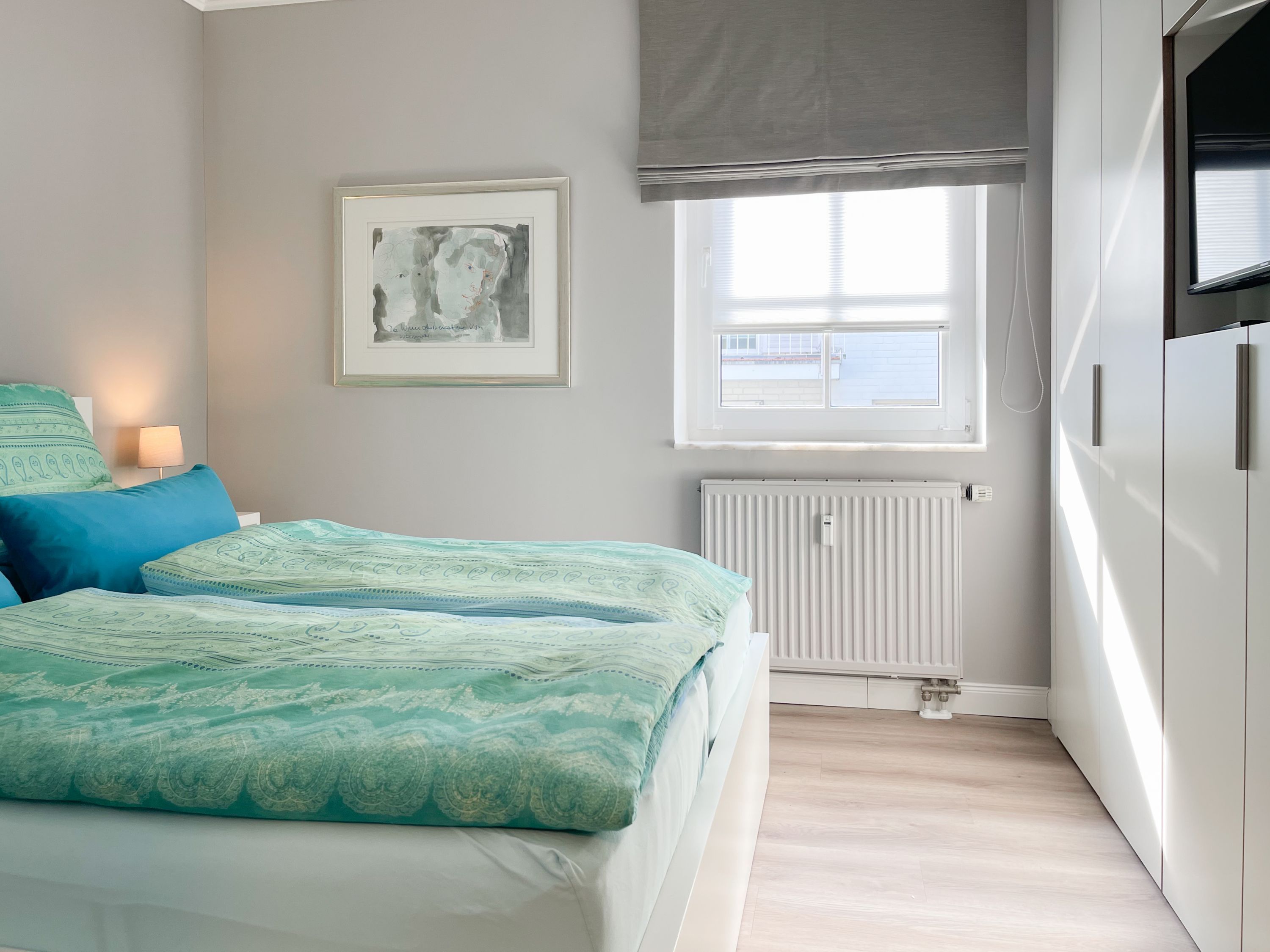 Frisch und aufwendig renoviert und äußerst geschmackvoll eingerichtet in 2024, erwartet Sie der Küstenschatz, um den wohlverdienten Urlaub in großartigem Ambiente zu verbringen. Der Innenarchitektin ist es gelungen, unter Verwendung warmer Farben, hochwertigem Mobiliar und passgenauen Einbauten einen hohen Wohnstandard zu schaffen, der höchsten Ansprüchen genügt. Ein Highlight ist der großzügige, umlaufende Eckbalkon in Nordwestausrichtung mit herrlichem Blick in den Kurpark, mit Sonnenschein vom Nachmittag bis zum Sonnenuntergang. Der stilvolle Wohnbereich ist mit einem Schlafsofa, TV und Bluetooth-Lautsprecher ausgestattet und der anschließende Essbereich bietet ausreichend Raum für 4 Personen. Die äußerst hochwertige Designküche in perfekter Ausstattung fügt sich wunderbar in den Wohnraum ein und verfügt unter anderem über Spülmaschine, Backofen, Mikrowelle, Cerankochfeld, Radio und vieles mehr. Das Schlafzimmer ist mit einem Doppelbett (160x200) sowie einem passgenauen Einbauschrank mit integriertem TV eingerichtet. Das Fenster lässt sich mittels Rollo verdunkeln. Das moderne Bad ist mit Waschtisch, WC und Duschwanne ausgestattet. WLAN steht selbstverständlich zur Verfügung.