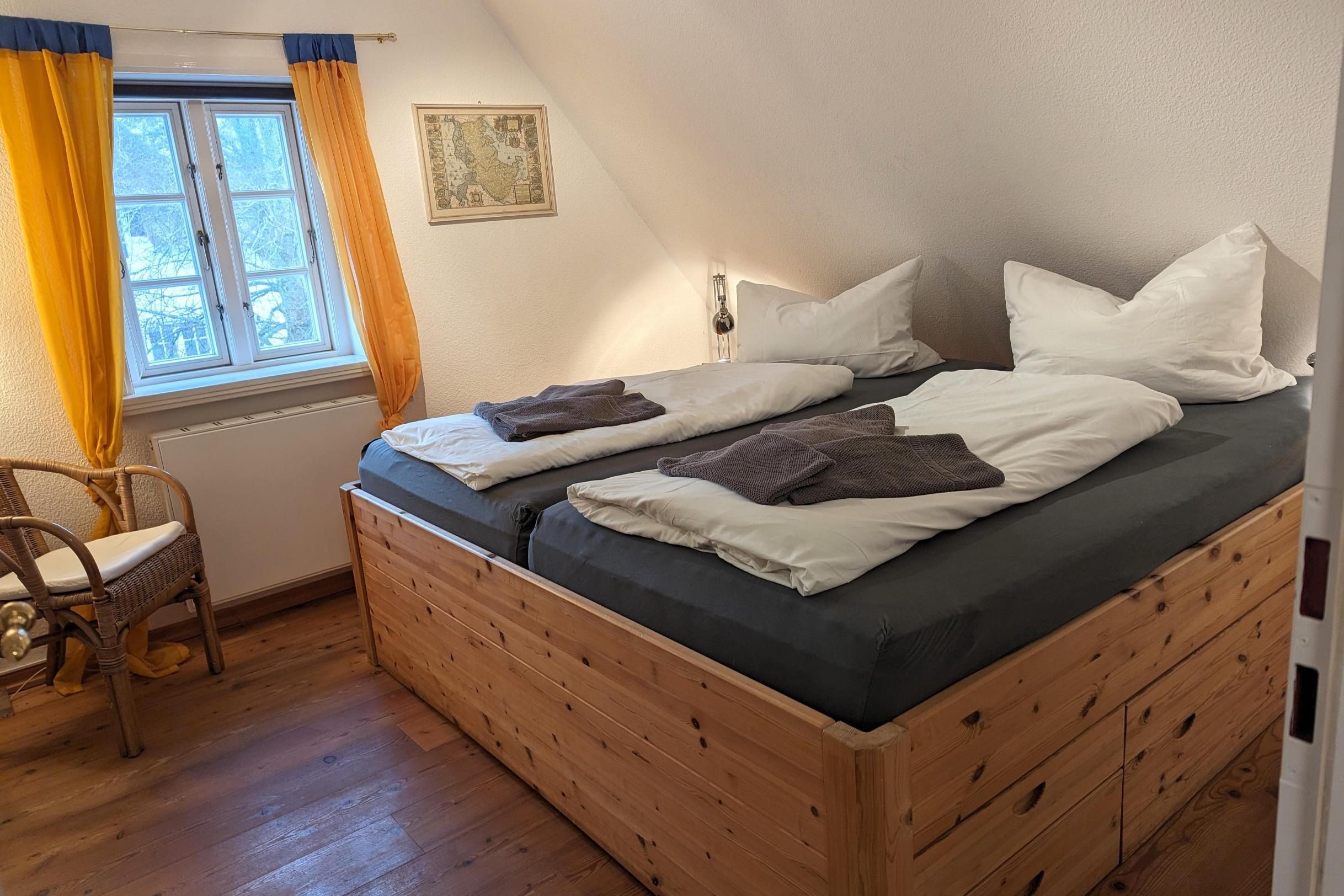 Raumaufteilung: 1 Schlafraum (1 Doppelbett), 1 Schlafraum (1 Doppelbett), 1 Wohn-/Esszimmer, 1 Flur, 1 Wohnküche, 1 Badezimmer mit Dusche, 1 Badezimmer mit Badewanne.