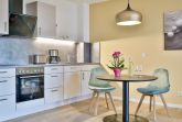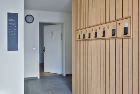 Der Zugang zur Wohnung erfolgt per kontaktloser Selbst-Check-In. Im Treppenhaus befindet sich zudem ein Aufzug, über den Sie die Wohnungen in den oberen Stockwerken erreichen.