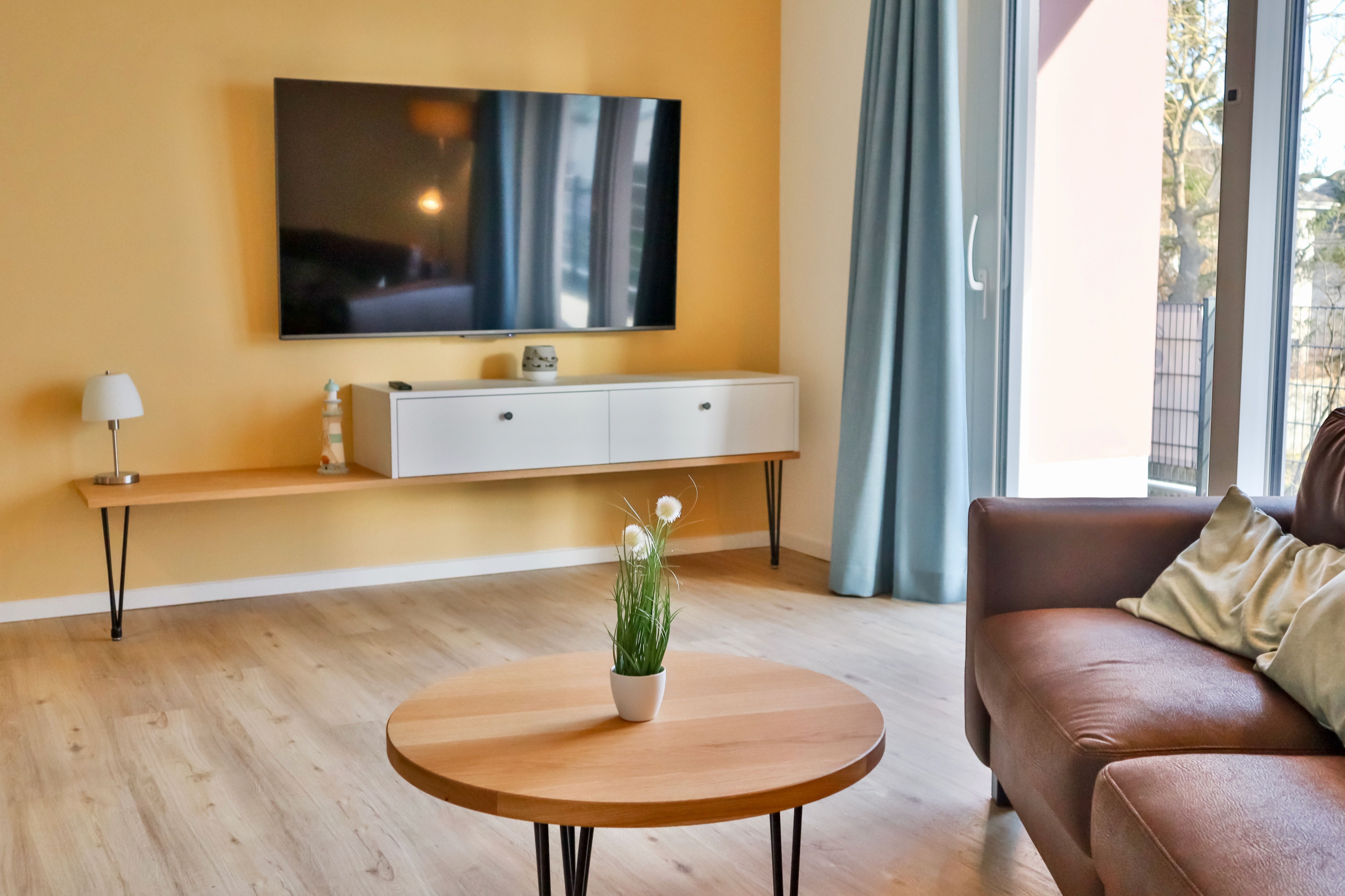 Das Haus beherbergt 7 moderne, individuell und hochwertig eingerichtete 2, 3-Raum-Appartements sowie eine Penthouse Wohnung. Alle Wohnungen verfügen über getrennte Wohn- und Schlafzimmer, große Badezimmer mit ebenerdiger Dusche, WC und Badewanne, eine voll ausgestattete moderne Einbauküche im Wohnzimmer und Terrasse oder Balkon mit Blick auf die Ostsee.