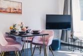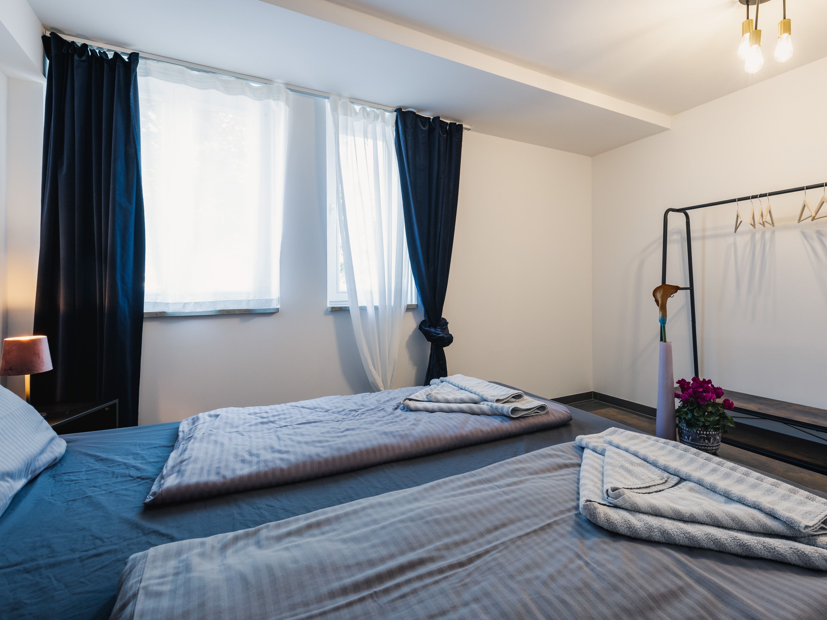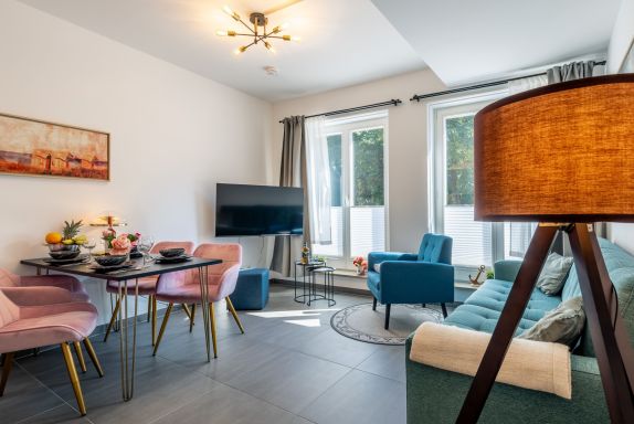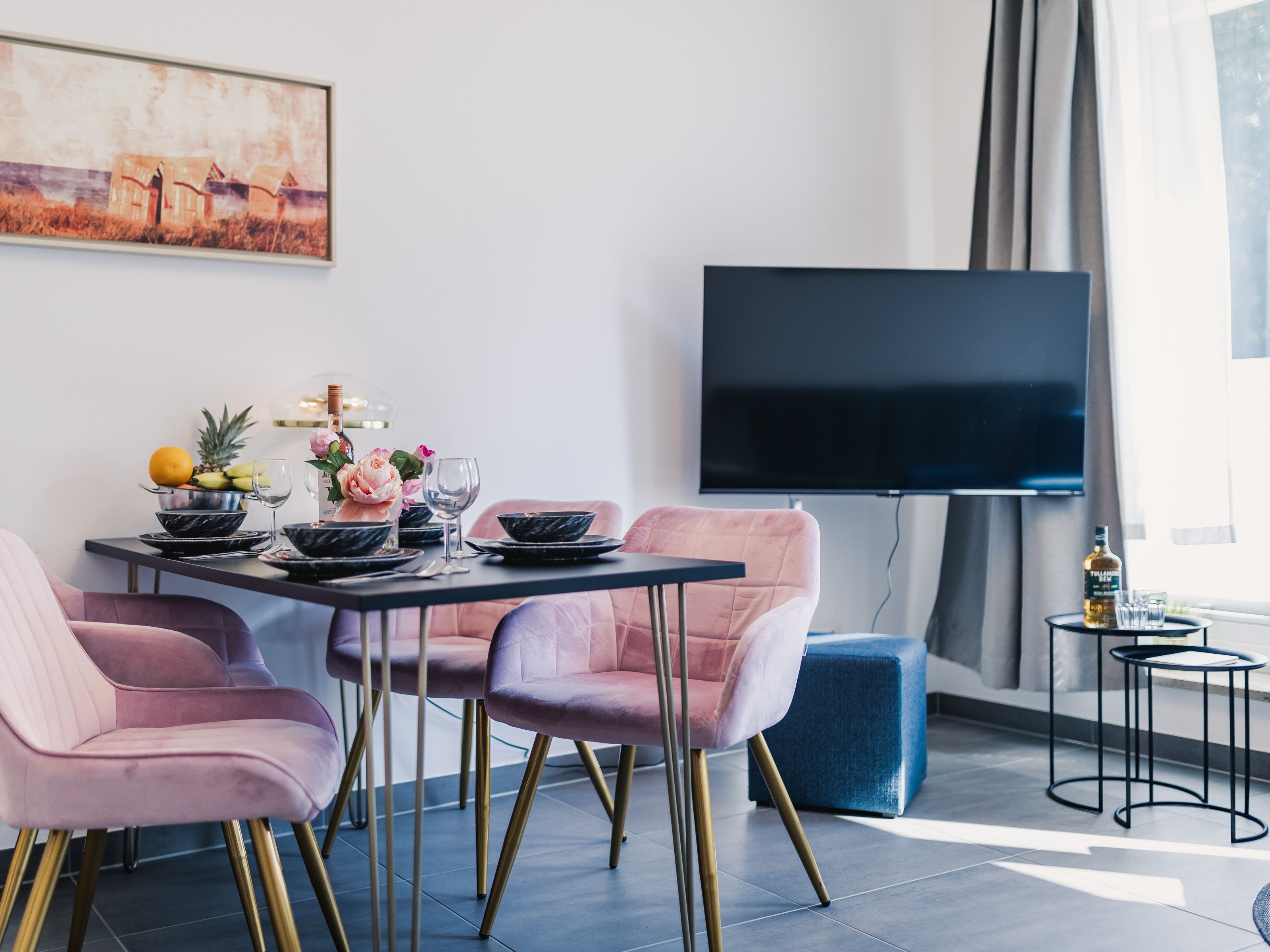 Das Altstadt-Studio 8 erstreckt sich über zwei Etagen, die durch einen privaten Hausflur verbunden sind und bietet mit 100 m² viel Platz für bis zu 4 Personen. Zwei Schlafzimmer mit bequemen Doppelbetten und zwei moderne Bäder mit Dusche sorgen für zusätzlichen Komfort. Der Wohnbereich mit offener Küche lädt zu gemeinsamen Mahlzeiten oder entspannten Abenden ein. Beide Studios bieten dir eine voll ausgestattete Küche, in der du bequem kochen kannst, sowie gemütliche Wohnbereiche mit Smart-TV und kostenfreiem WLAN. Direkt vor der Tür findest du eine öffentliche Ladestation für E-Autos ideal für umweltbewusste Reisende.
