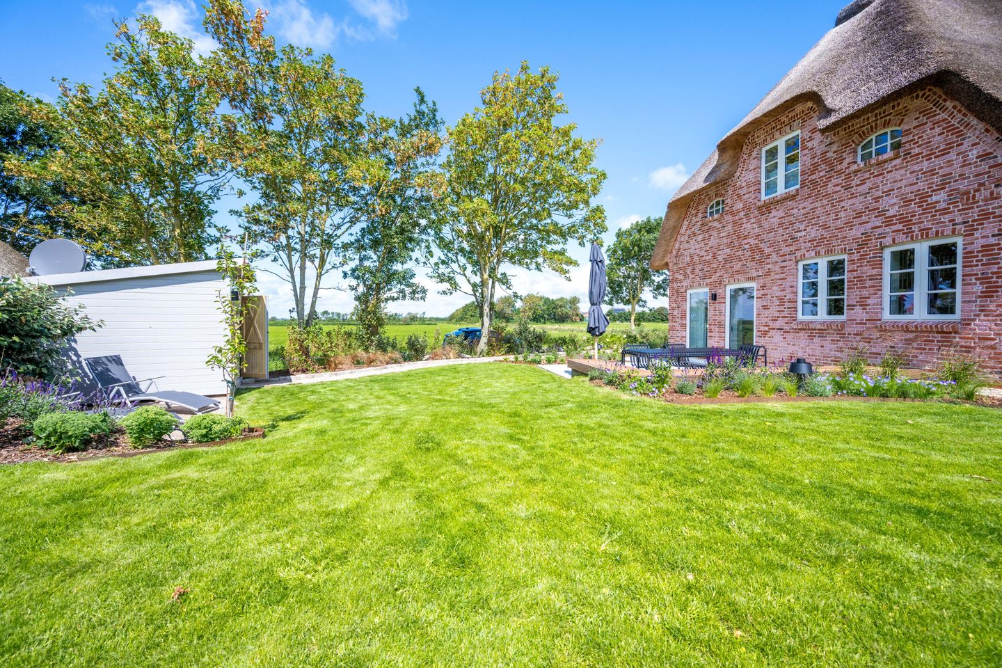 Von außen ein traditionelles Reetdachhaus, kontrastiert der Innenraum mit einem modernen Design und individuell angefertigten Einbaumöbeln.