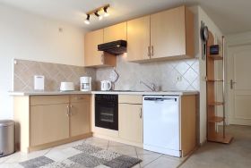 In der offenen Küche finden Sie alles, was Sie benötigen, um köstliche Mahlzeiten zuzubereiten. Ein Herd mit Backofen, ein Kühlschrank, eine Spülmaschine, eine Kaffeemaschine, ein Wasserkocher, ein Toaster sowie allgemeine Küchenutensilien stehen zu Ihrer Verfügung.