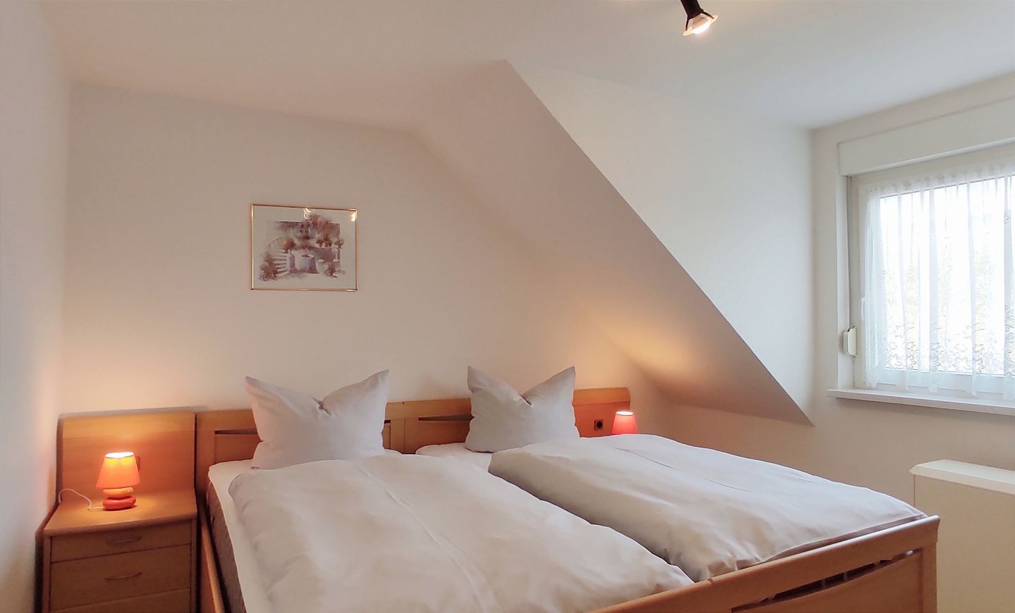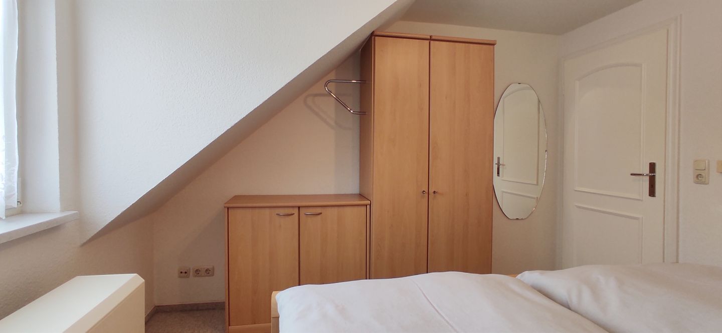 Die Wohnung verfügt über insgesamt drei Zimmer, darunter zwei Schlafzimmer, die jeweils mit einem Kleiderschrank ausgestattet sind. In einem der Schlafzimmer erwartet Sie ein komfortables Doppelbett, während im anderen zwei Einzelbetten bereitstehen. So finden Sie hier alle Annehmlichkeiten für eine erholsame Nachtruhe.