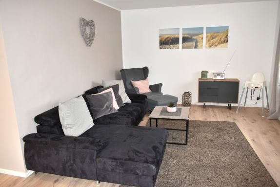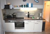 Wohnzimmer: 2 Kommoden, 4 Plattenherd mit Ceranfeld und Backofen, 6 Stühle, Eckschlafcouch 1,90 x 1,25 m, Esstisch, Filterkaffeemaschine, Geschirr, Hocker, Kochtöpfe, Kühlschrank mit Gefrierfach, Messerblock, Mikrowelle, Plissees, Radio, Sessel, Spülmaschine, Toaster, wandhängender Sat-TV Flachbildschirm, Wasserkocher