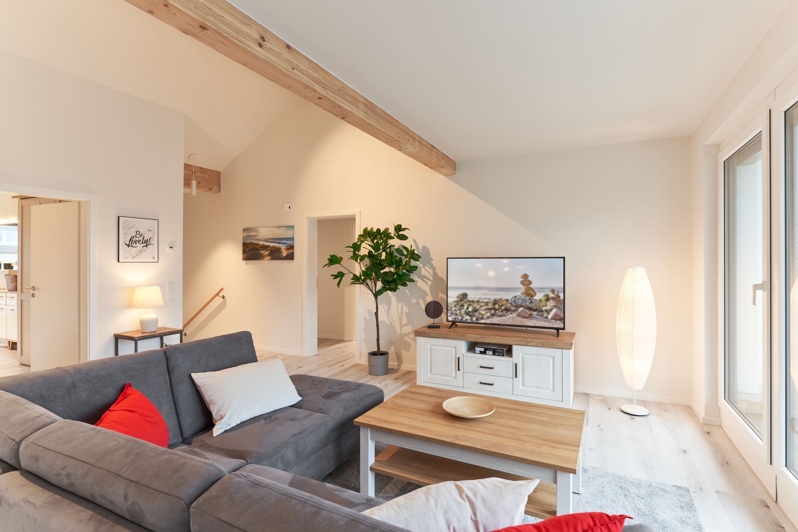 Genießen Sie Ihren Urlaub in dieser lichtdurchfluteten Ferienwohnung, die Ihnen mit ihren zwei geräumigen Schlafzimmern, 2 Duschbädern und dem großen Wohnzimmer mit integrierter Küchenzeile ihre wohlverdiente Entspannung bietet.