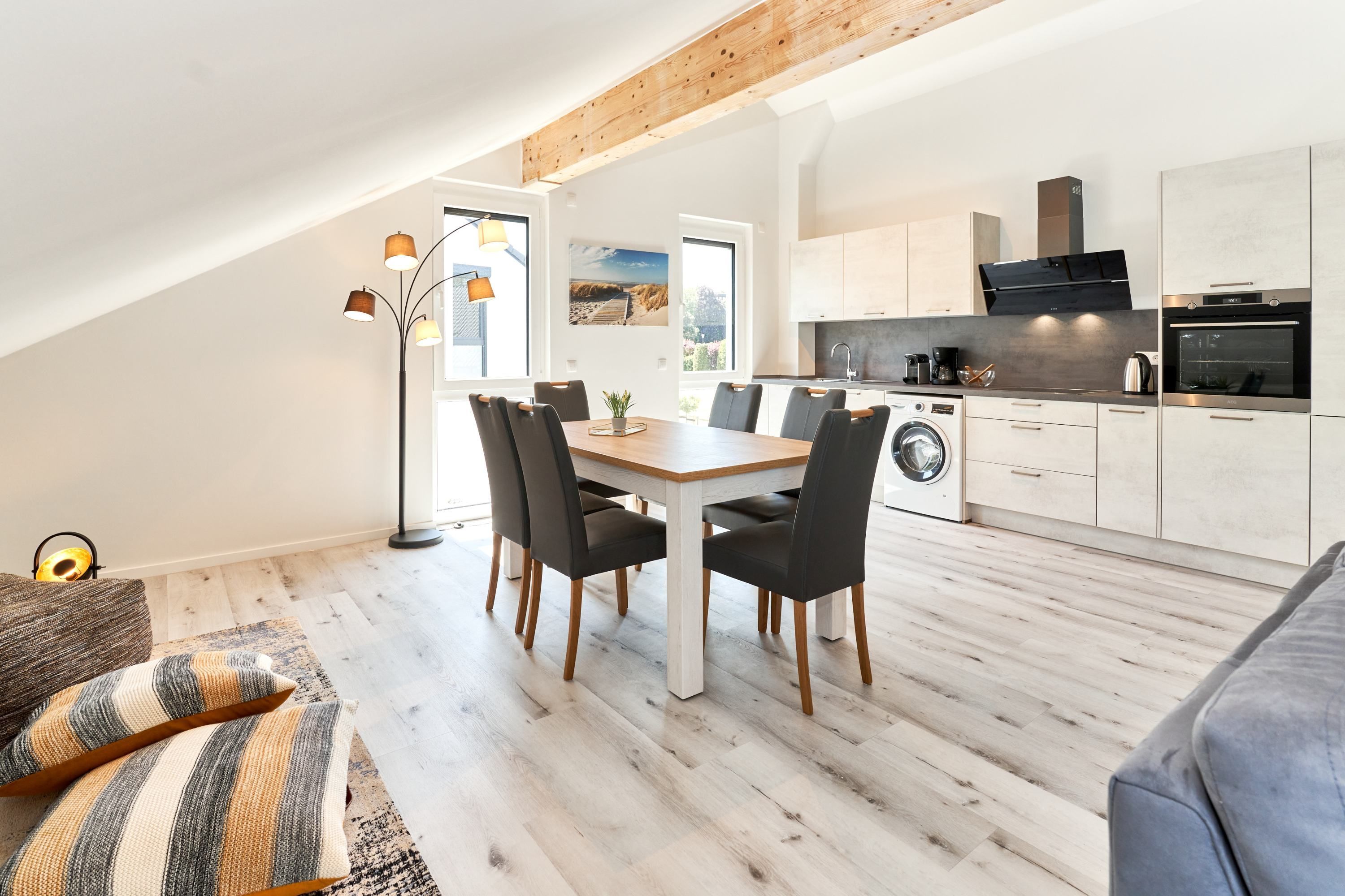 Genießen Sie Ihren Urlaub in dieser lichtdurchfluteten Ferienwohnung, die Ihnen mit ihren drei Schlafzimmern, 2 Duschbädern und dem großen Wohnzimmer mit integrierter Küchenzeile Ihre wohlverdiente Entspannung bietet.