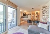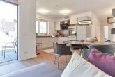 Sehr feine Wohlfühlwohnung, ca. 68m². Die Wohnung zeichnet sich durch eine moderne, hochwertige Inneneinrichtung aus. Die Küche ist in ansprechender Optik und mit hochwertigen Einbaugeräten ausgestattet. Neben einer Kaffeemaschine steht Ihnen auch ein Jura-Kaffee-Vollautomat zur Verfügung. Aus dem Küchenfenster genießen Sie einen ersten Blick auf die Ostsee.