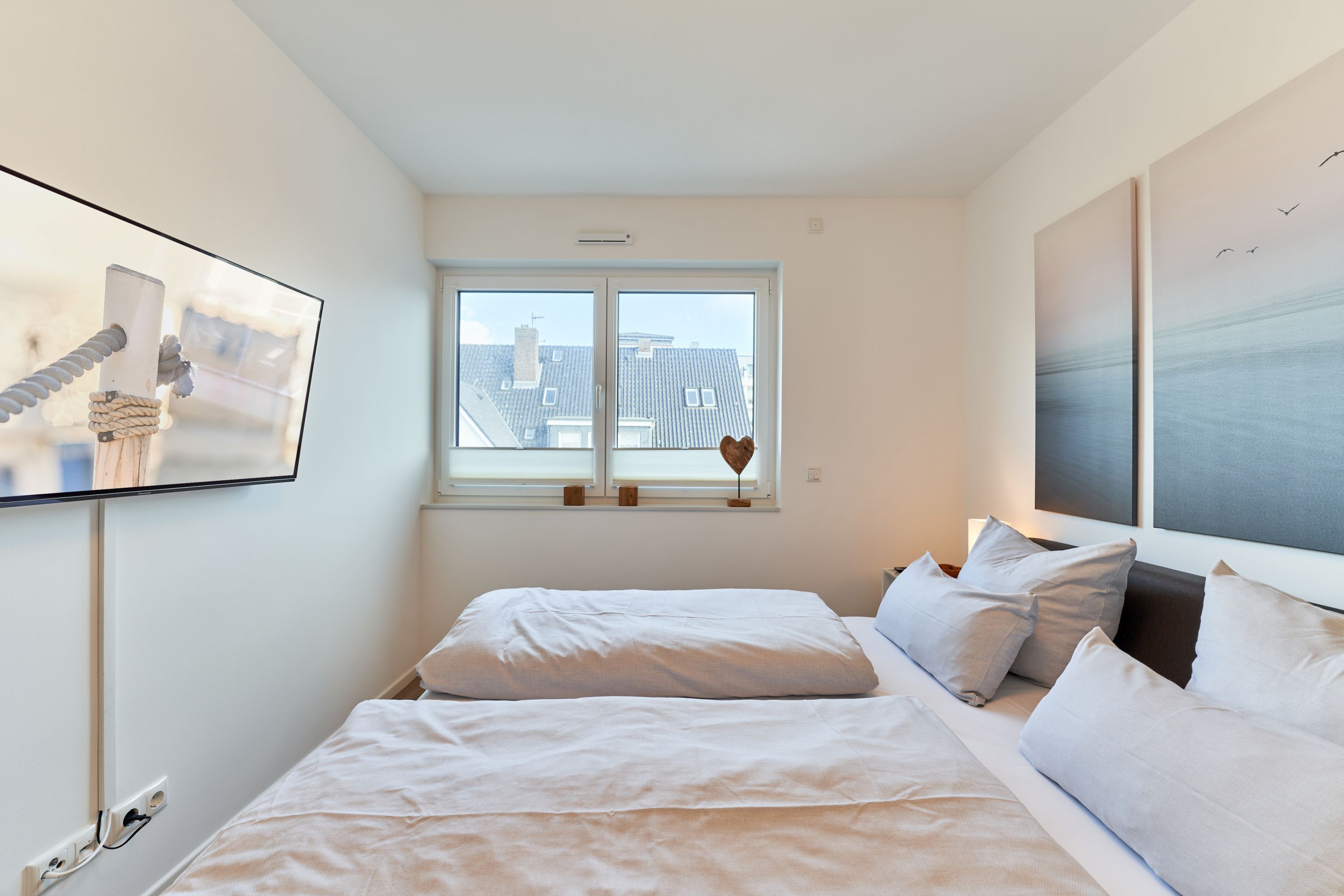 Die 3-Zimmerwohnung Sea View liegt im 2. OG und ist mit dem Fahrstuhl bequem zu erreichen. Der feinsandige, weiße Strand liegt nur 50m entfernt. Sie liegt nah an der pulsierenden Dünenmeile. Innerhalb von 1 Gehminute erreichen Sie alles, was Sie für Ihren entspannten Urlaub benötigen: Bäcker, Restaurants, Cafés, Bars und gehobenen Einzelhandel.