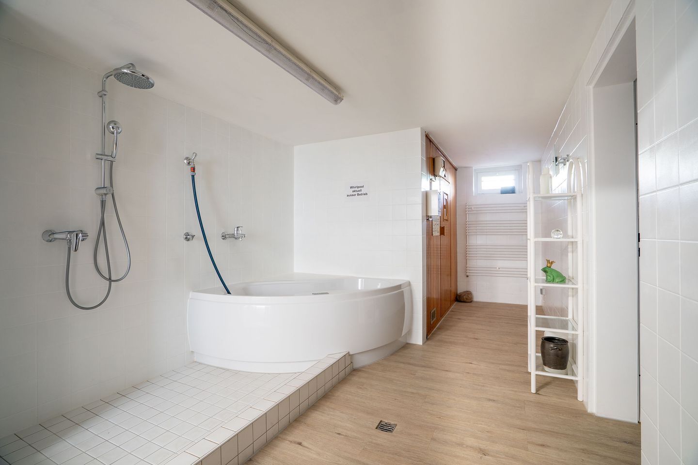 Im Haus mit den einzelnen Wohnungen gibt es einen Aufzug. Eine Besonderheit ist das separate, abschließbare, rollstuhlgerechte Bad mit Dusche und WC im Erdgeschoss. Dieses ist öffentlich und kann von allen Gästen der Ferienwohnungen genutzt werden. Die Türbreite beträgt 70cm.