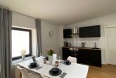 - offene Küche ausgestattet mit Geschirrspüler, Backofen, CeranKochfeld, Kühlschrank, Kaffeemaschine, Wasserkocher, Geschirr, Besteck, Gläser uvm.