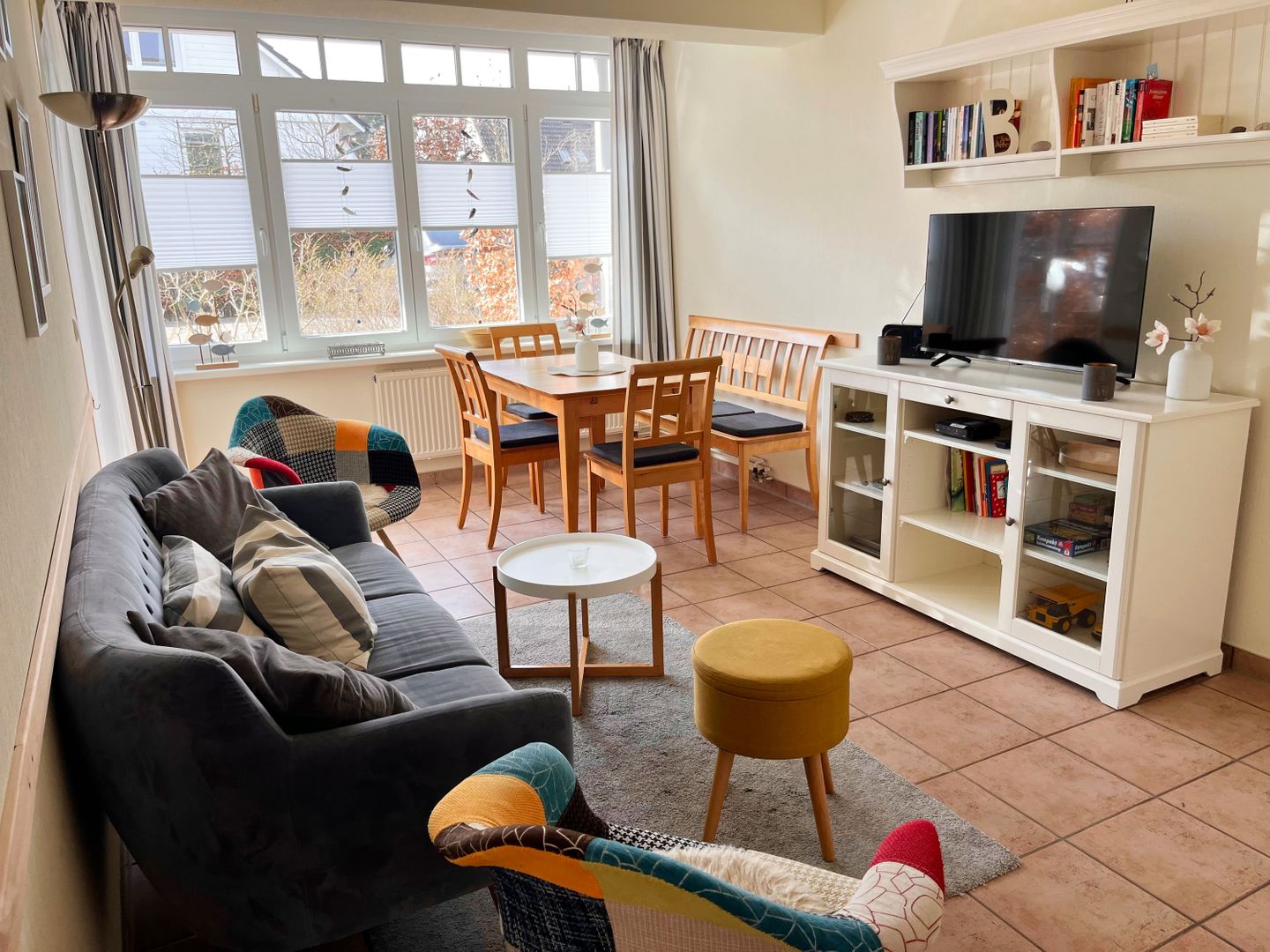 WOHNEN // Wohnraum mit Essbereich, Sitzgarnitur mit bequemer Couch, Flachbildfernseher ++