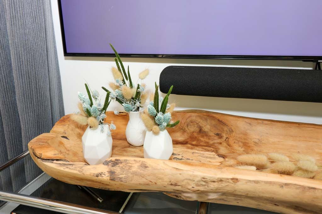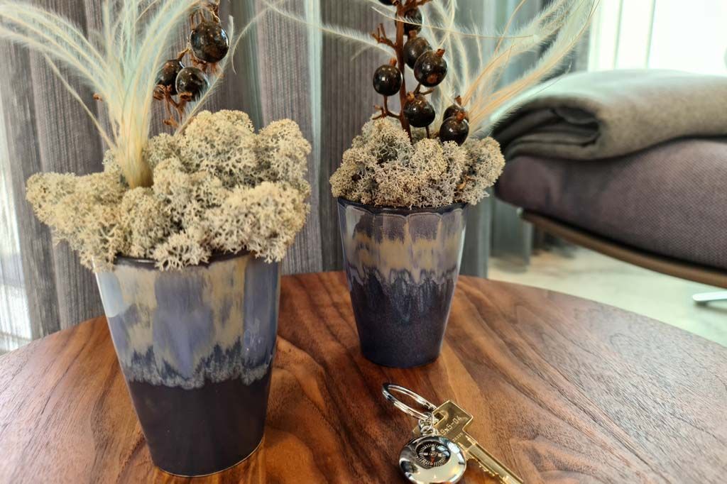 Es erwartet Sie eine 54 m² große und exklusive Design-Ferienwohnung, mit einer besonderen Wohlfühlatmosphäre. Das abgestimmte Wohnraumkonzept von COR, USM und JAB wird mit einem Wellnessbereich von Villeroy & Boch abgerundet. Das harmonische Lichtkonzept des Hauses Prediger schafft eine stimmungsvolle Atmosphäre und setzt die originalen Acrylbilder und stylische, naturbelassene Dekorationen ins richtige Licht.