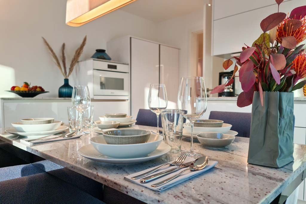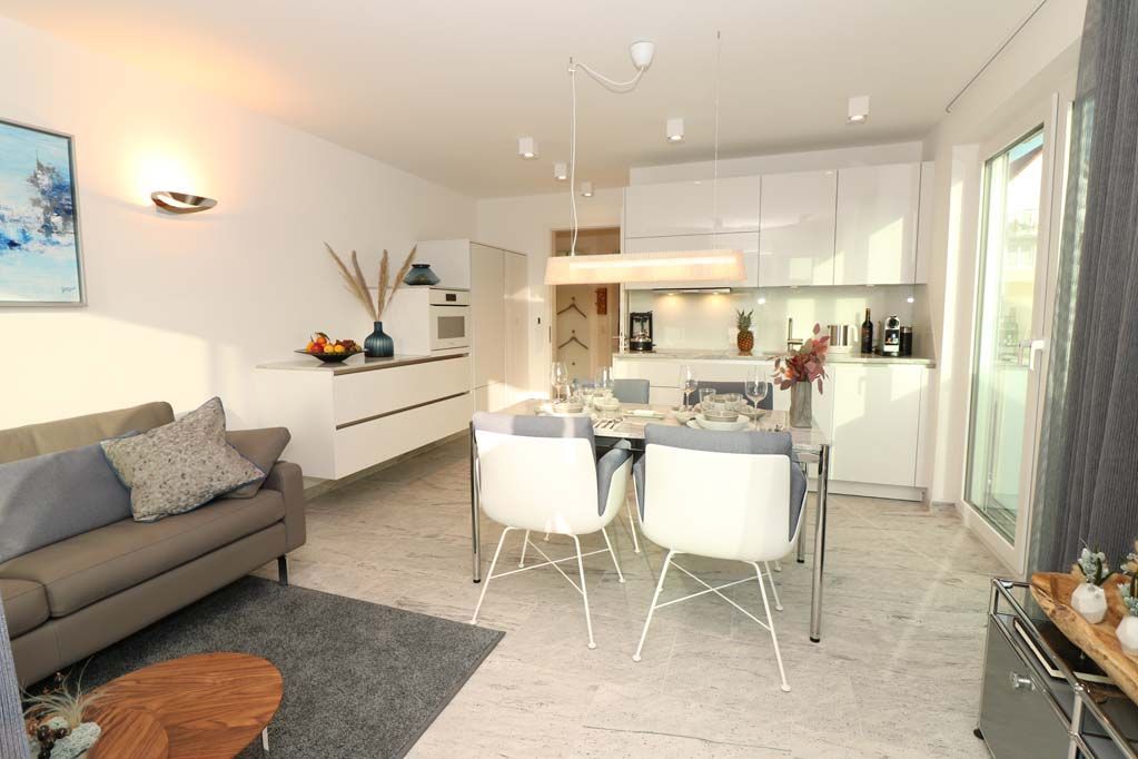 Wohn-Ess-Bereich: Genießen Sie kulinarische Erlebnisse in der hochwertigen Warendorf-Küche mit Miele-Einbaugeräten, einer Nespresso-Maschine sowie hochwertigem Rosenthal-Porzellan. Es erwarten Sie Design-Klassiker von USM Haller (Esstisch und TV-Board) und COR (Ledersofa, Lounge-Chair, Esstisch-Stühle mit superbequemer Polsterung und Couchtische). Ein Samsung 65?-Smart-TV inkl. Soundbar mit LAN und kostenloses, unbegrenztes Highspeed-WLAN stehen Ihnen für Entertainment und digitales Erleben zur Verfügung. Zusätzlich steht Ihnen ein BOSE-Wave-Soundsystem für WLAN-Radio und CD zur Verfügung. Gerne können Sie Ihr Smartphone sowohl mit dem Samsung-Smart-TV/Soundbar als auch mit dem BOSE-Wave-Soundsystem verbinden und Ihre Lieblingsmusik hören.
