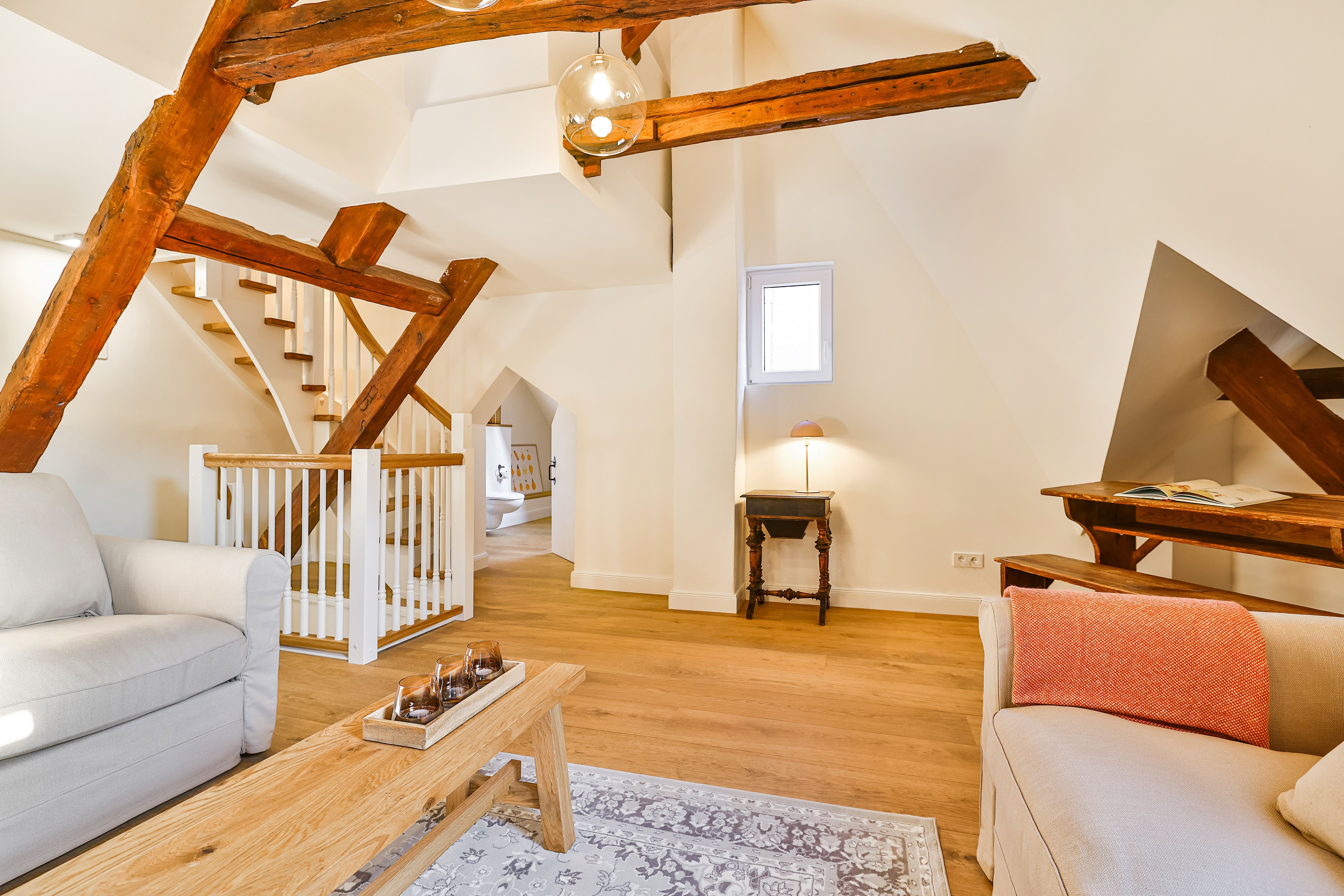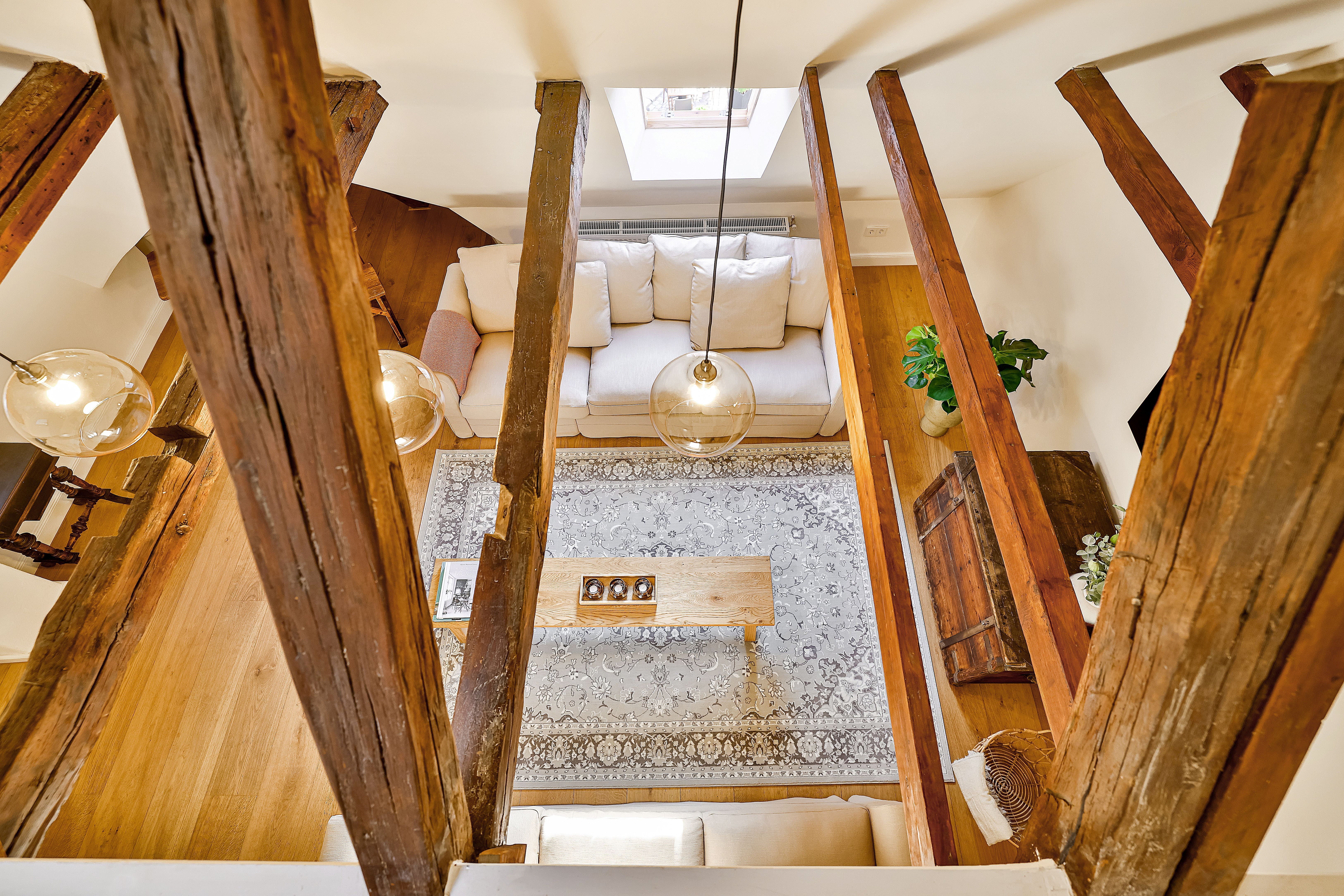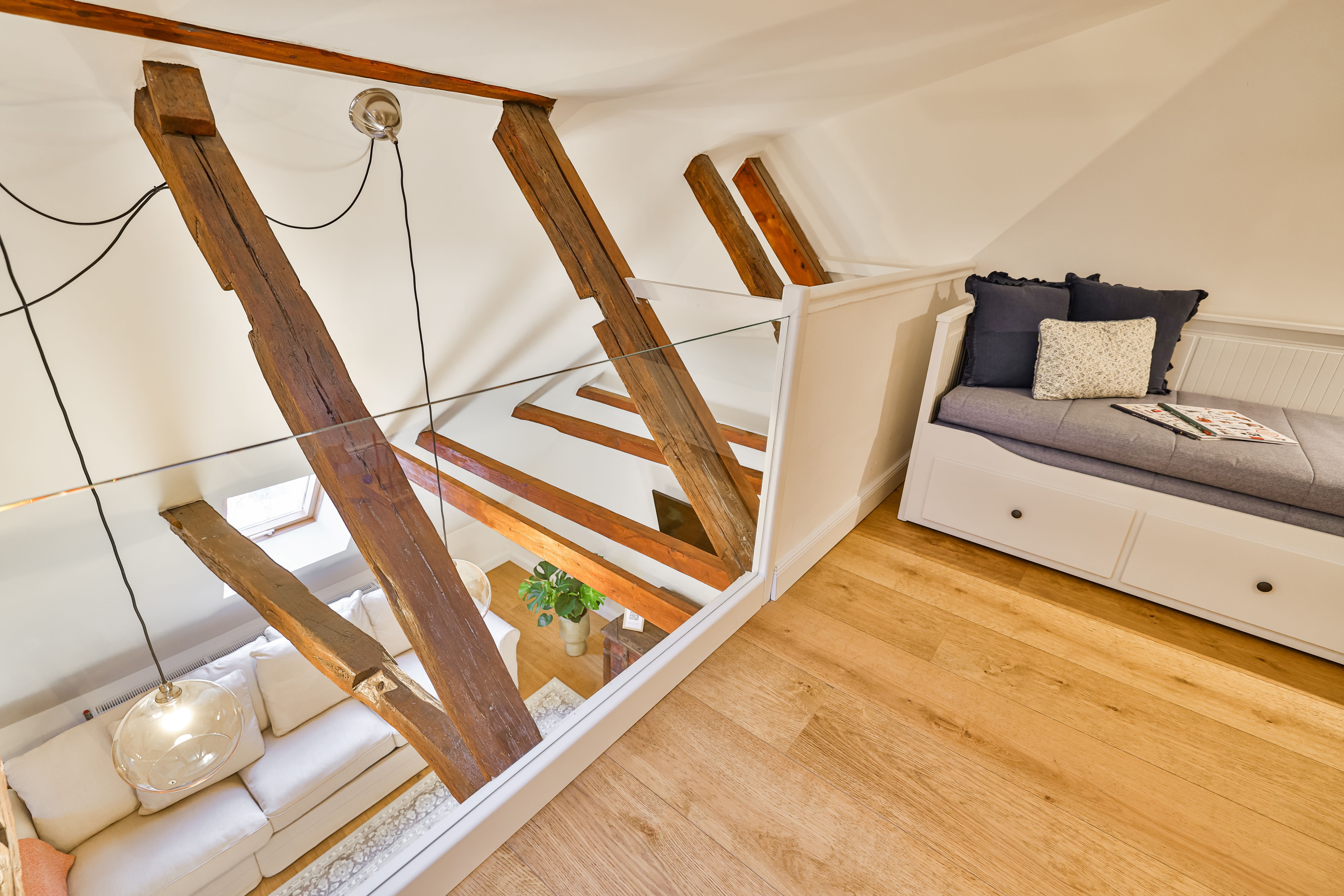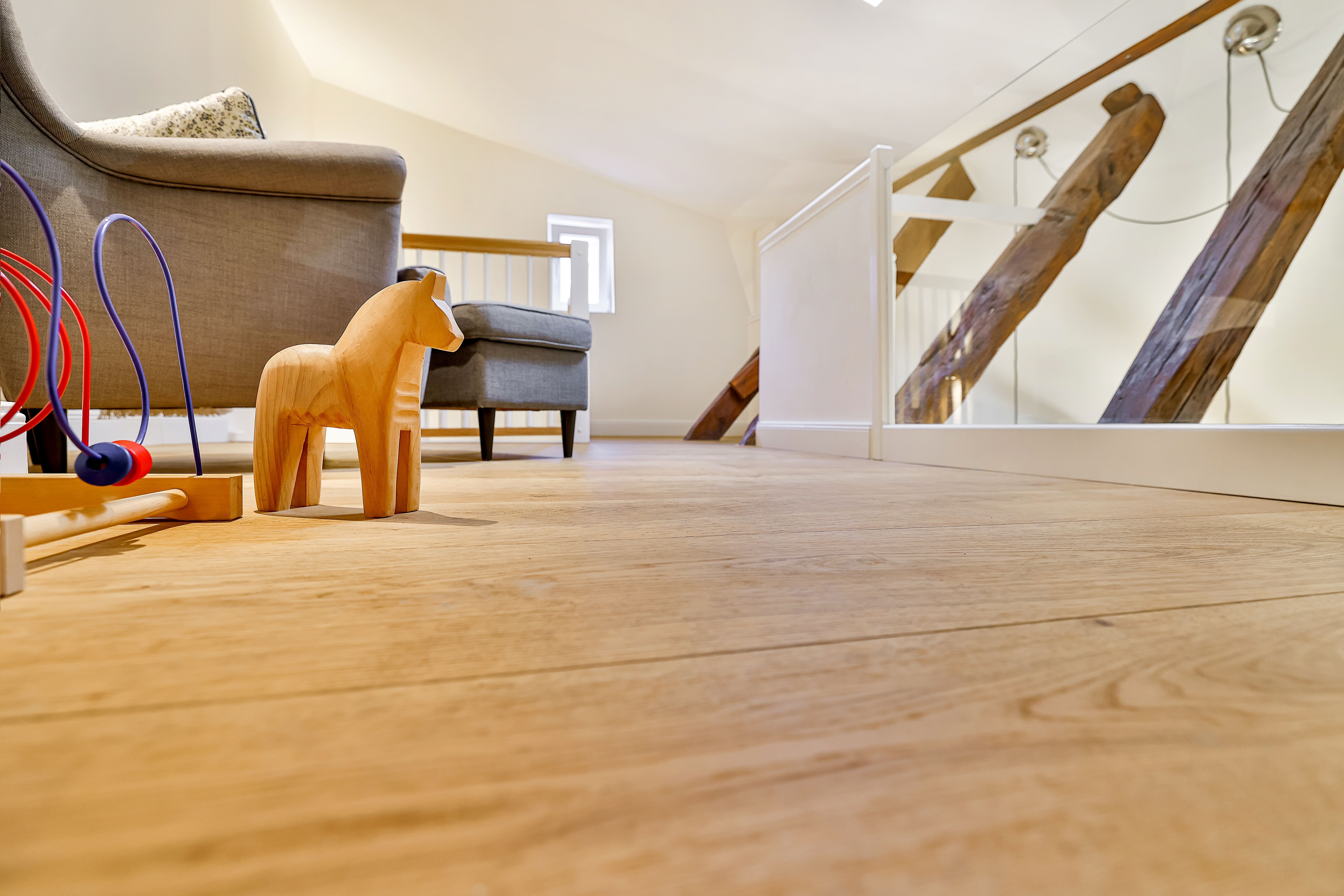 Im 2. OG gibt es das große Wohnzimmer mit 1 Schlafsofas und eine Galerie mit einem weiteren Doppelbett und das kleine Bad.