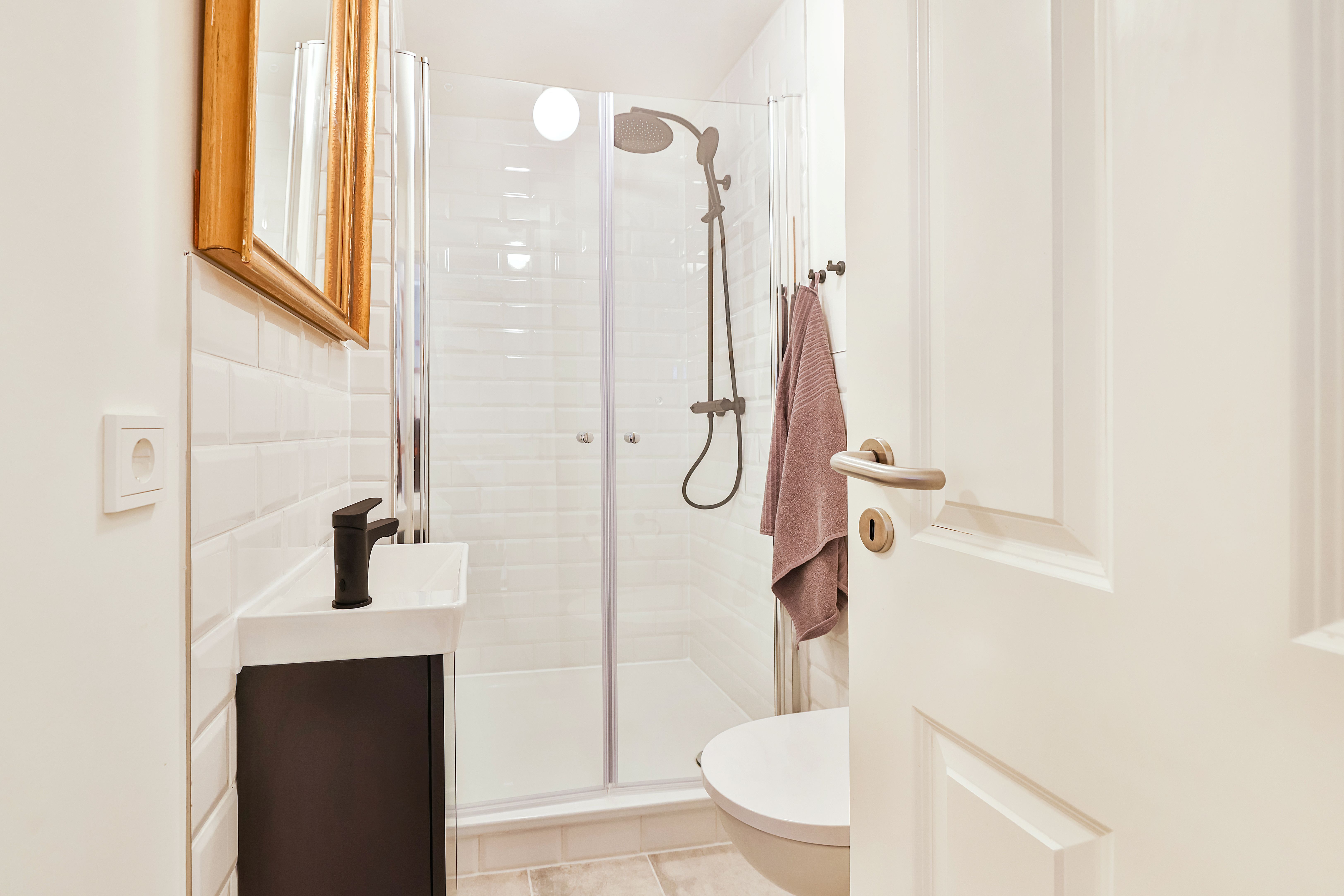 Im 1. OG gibt es 3 separate Schlafzimmer mit 3 Doppelbetten und das zweite Bad mit Dusche.