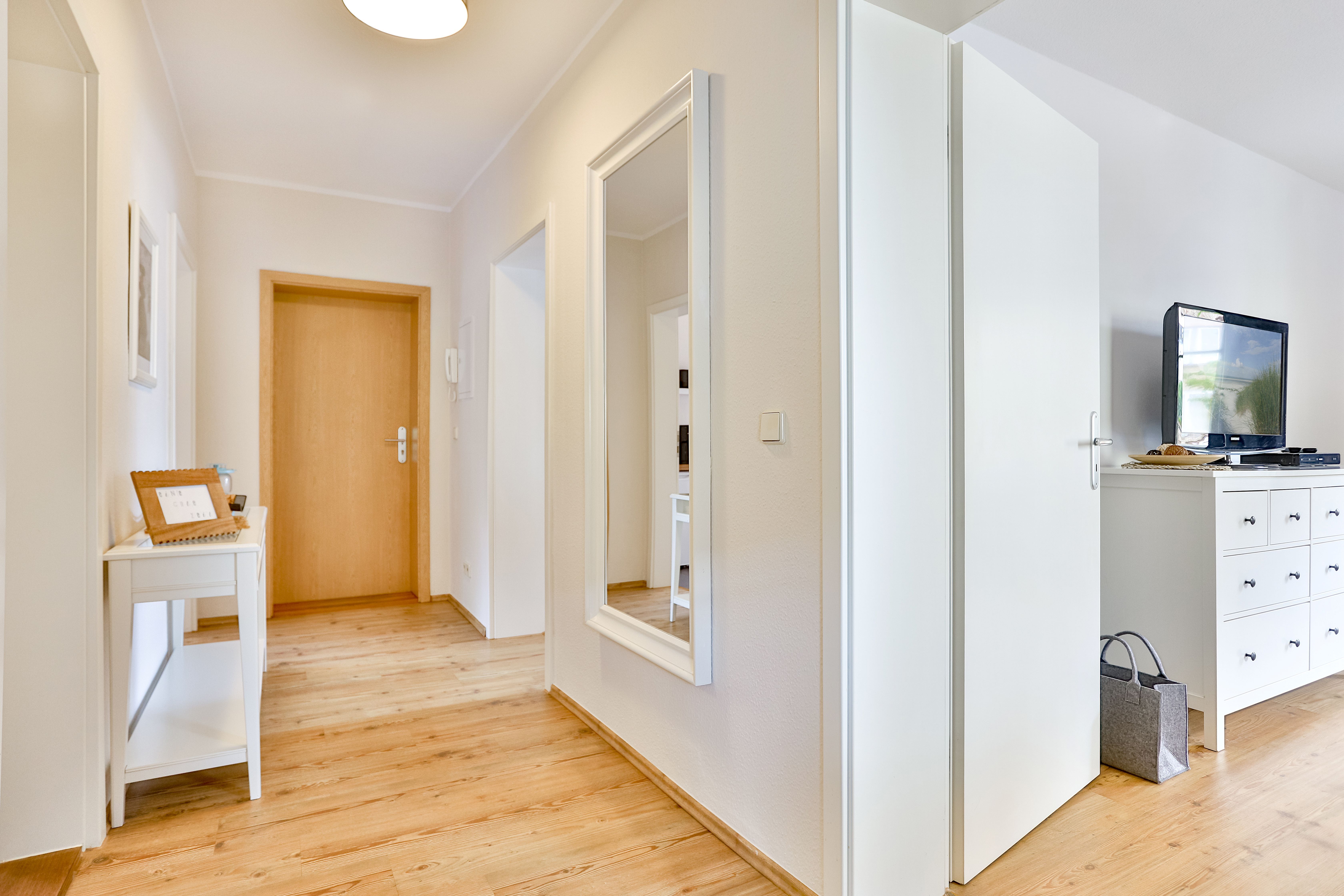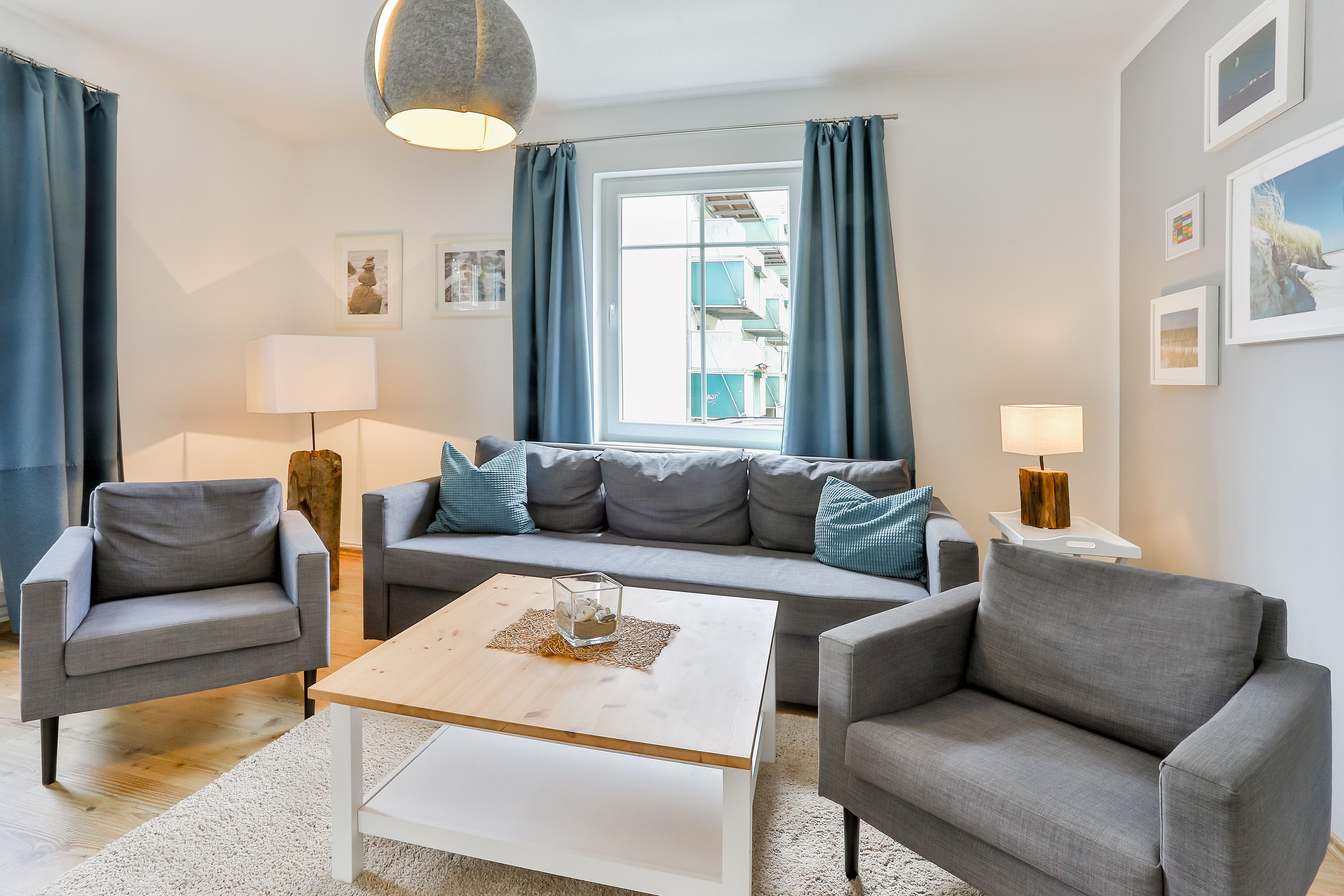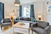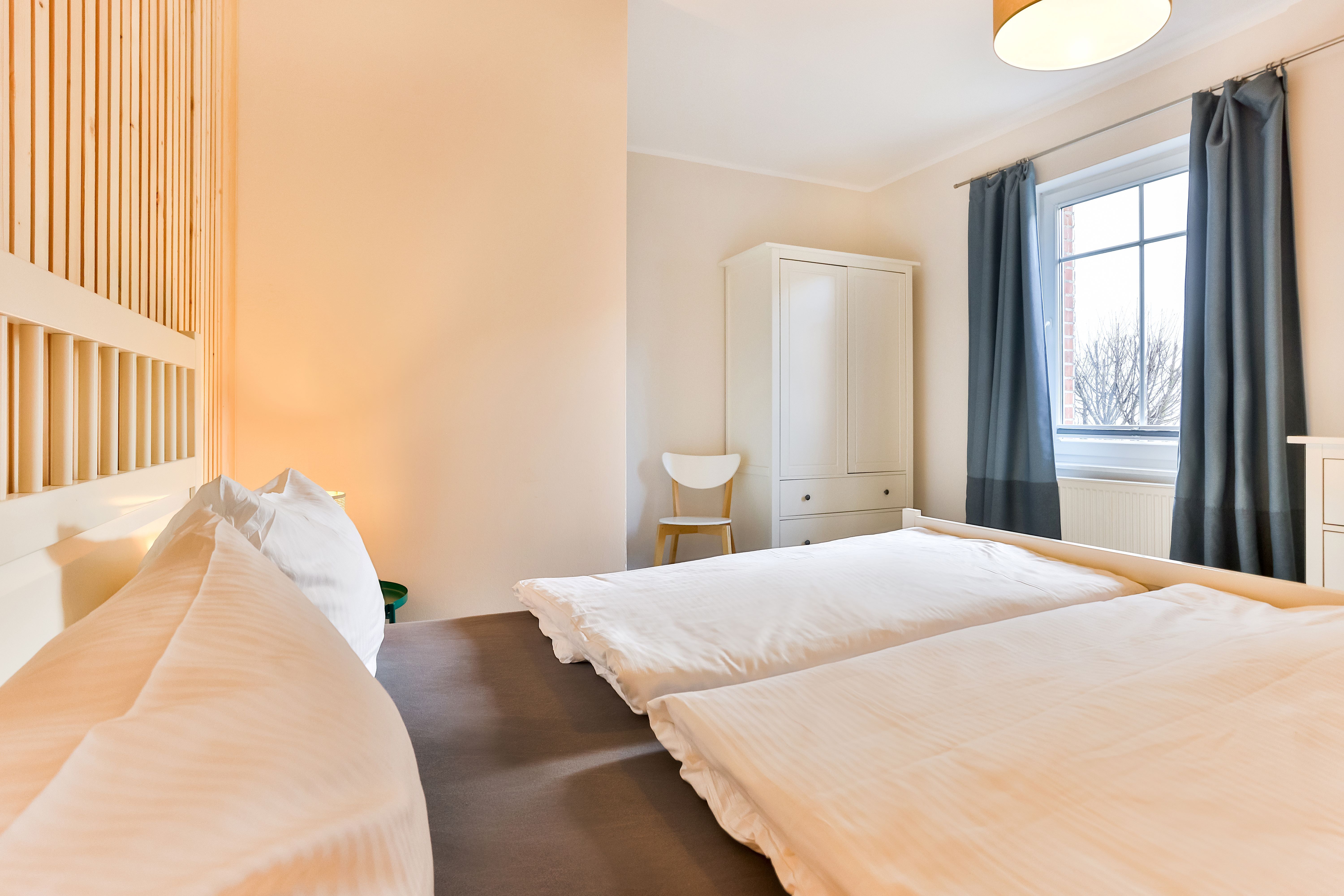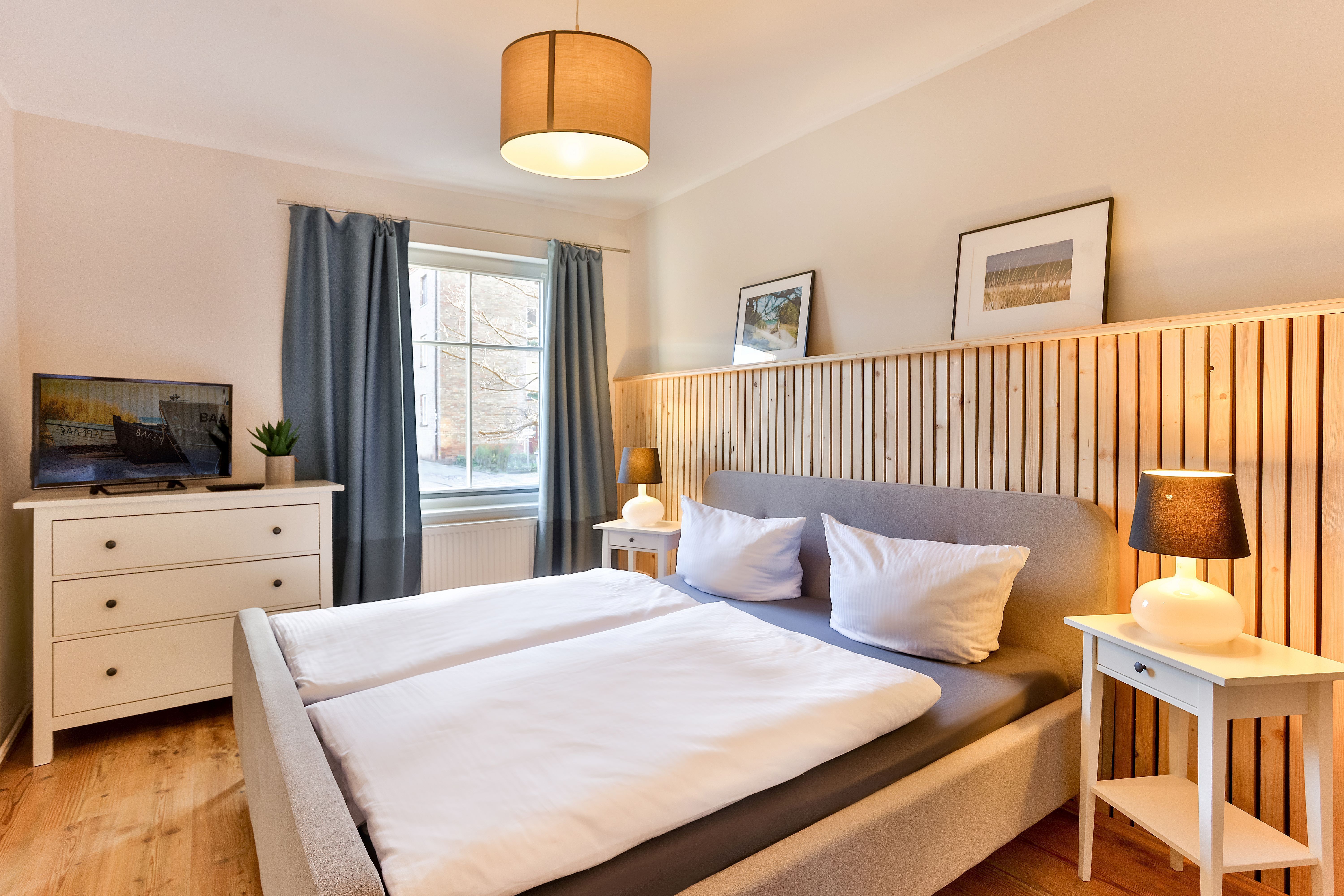 Die Wohnung liegt im Erdgeschoß (Hochparterre) und verfügt über 2 getrennte Schlafzimmer mit jeweils 1 Doppelbett. Im Wohnzimmer befindet sich eine Schlafcouch für maximal 2 Personen. Bei Bedarf können auch 2 Babyreisebetten zur Verfügung gestellt werden.
