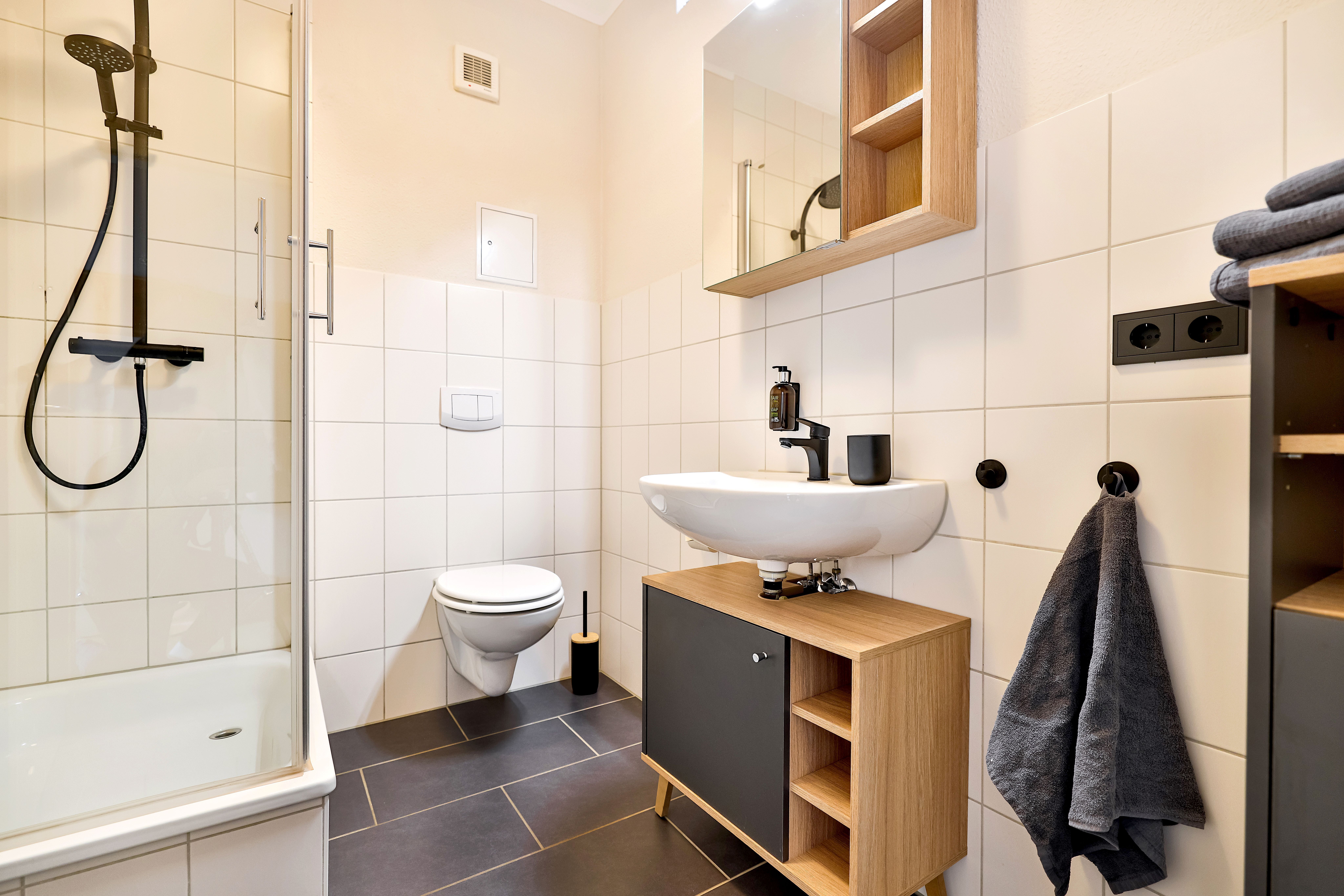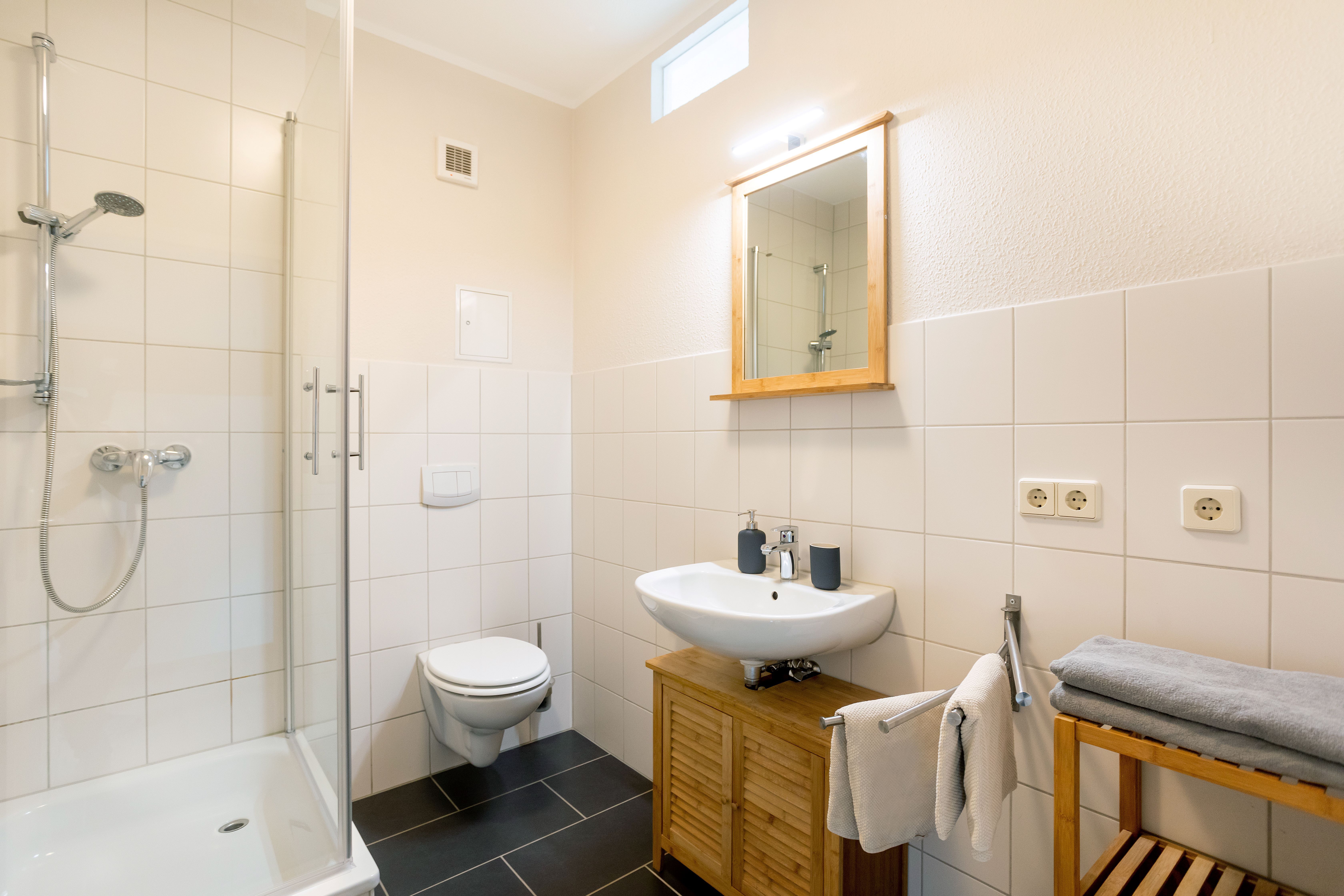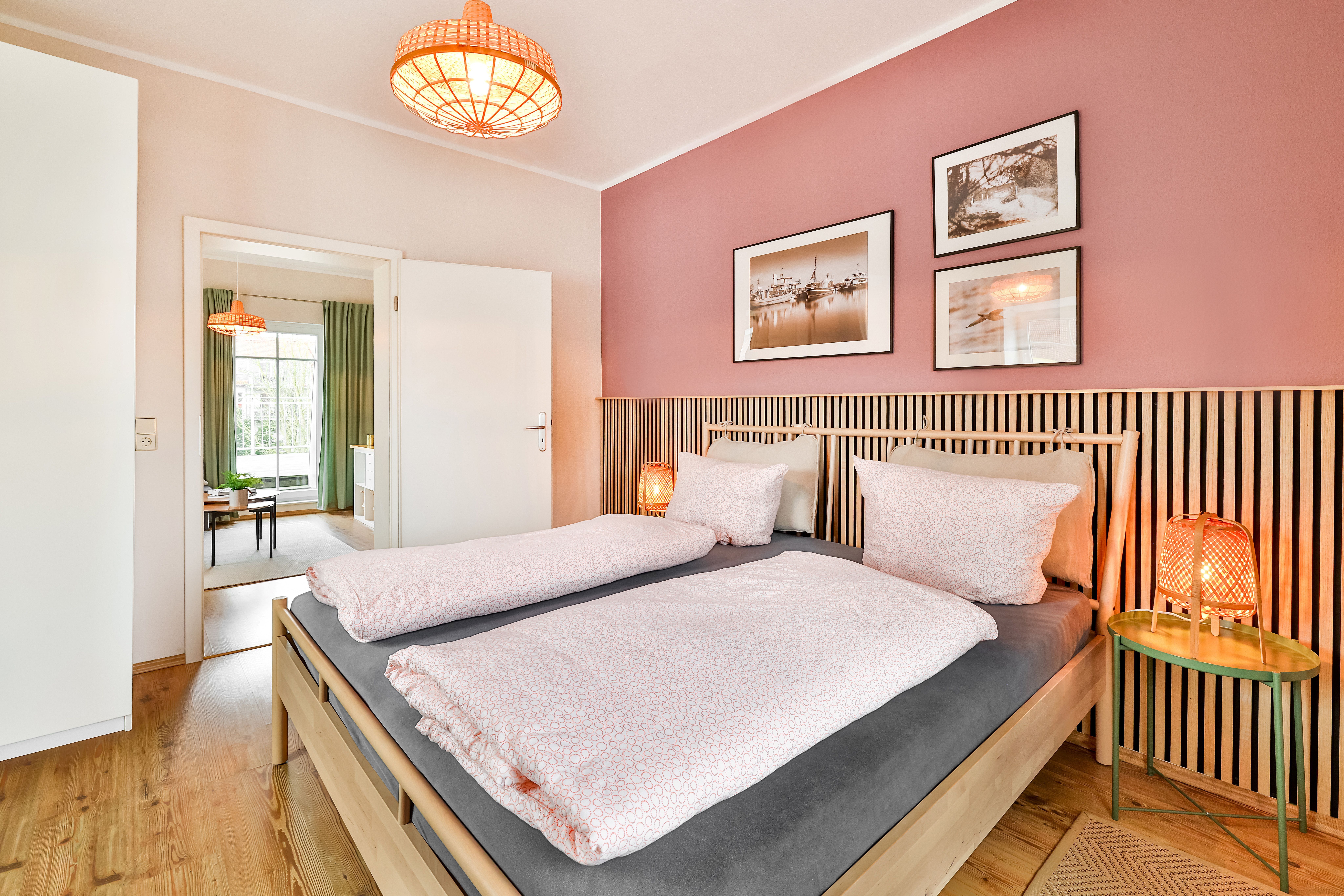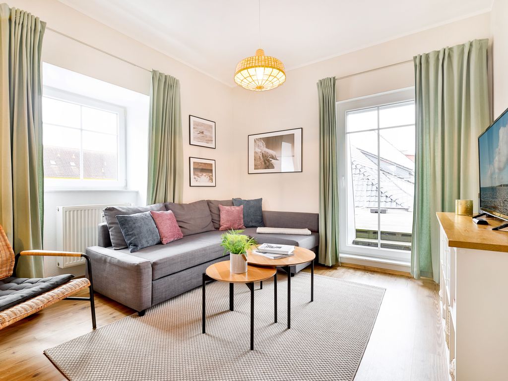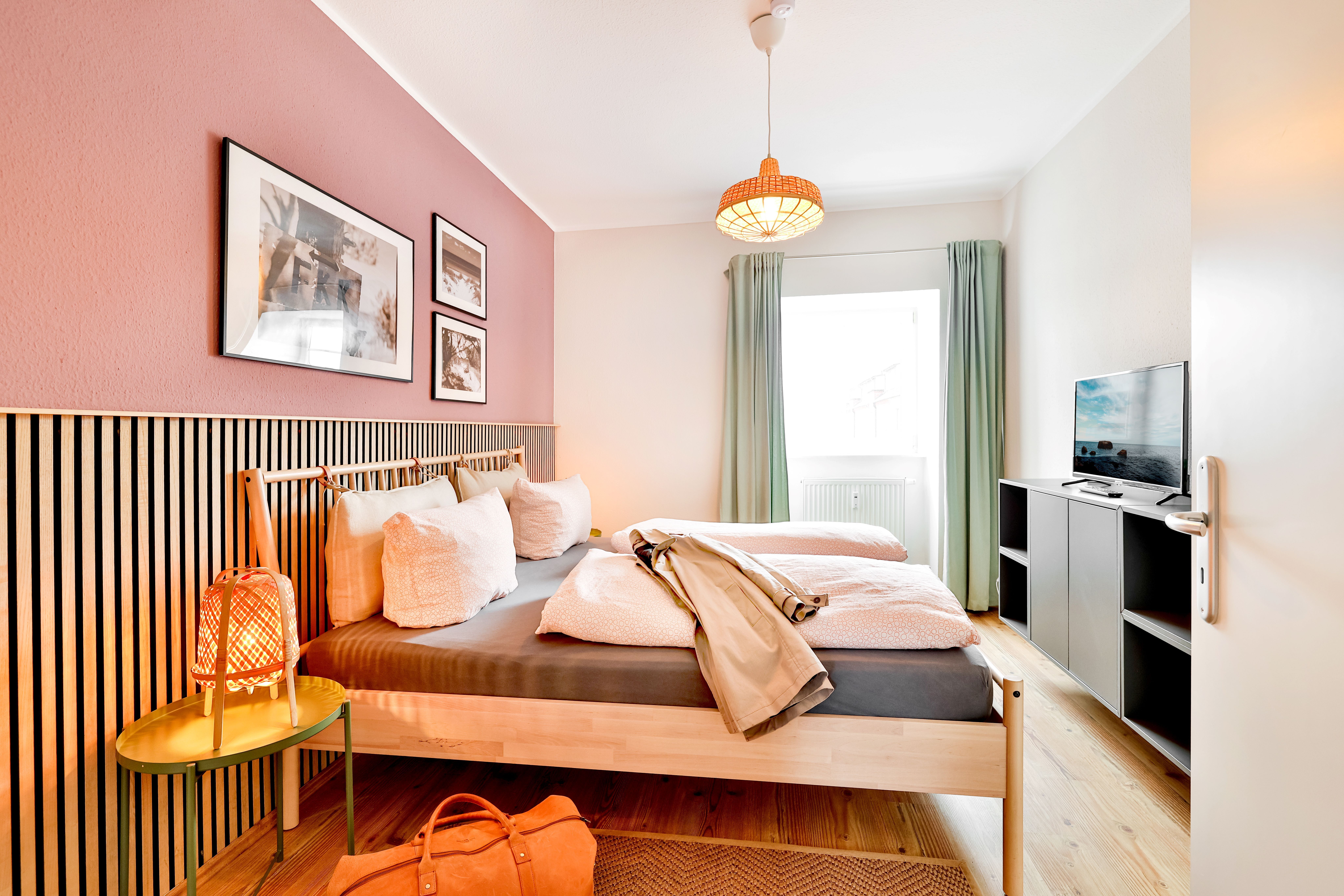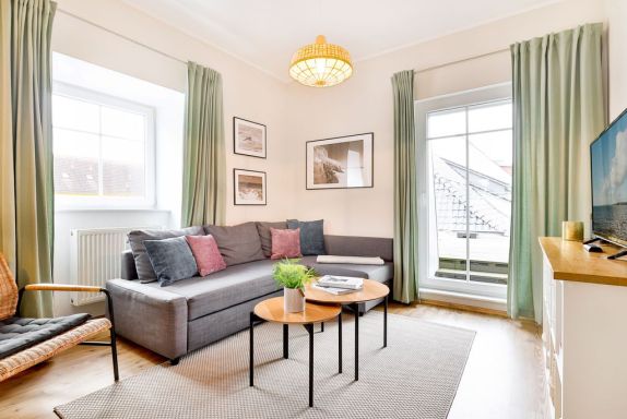 Die Wohnung liegt im 1.OG und verfügt über 2 getrennte Schlafzimmer mit jeweils 1 Doppelbett. Im Wohnzimmer befindet sich eine Schlafcouch für maximal 2 Personen. Bei Bedarf können auch 2 Babyreisebetten zur Verfügung gestellt werden.