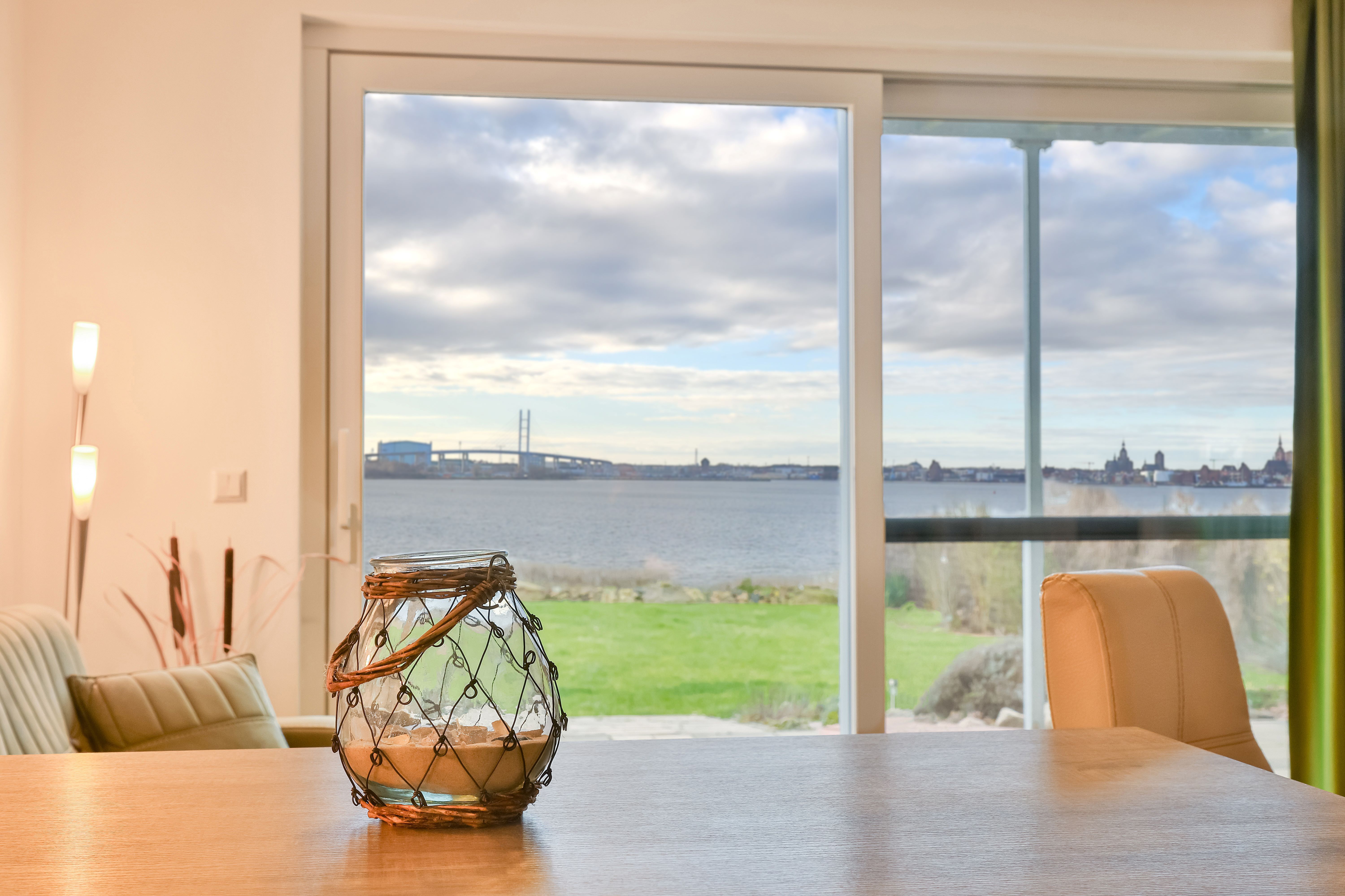 Unser im Mai 2015 fertiggestelltes Appartementhaus bietet Ihnen moderne, komfortable bis exklusiv ausgestattete Ferienwohnungen. In zweiter Reihe, zentral und dennoch sehr ruhig, direkt am Hochufer gelegen haben Sie einen unvergleichlich schönen Blick über den Sund auf die Skyline der Hansestadt Stralsund und die Rügenbrücke. Relaxen Sie in Ihrem Urlaub auf Ihrer großen möblierten Sonnenterrasse oder der Liegewiese im 700 qm großen Garten.