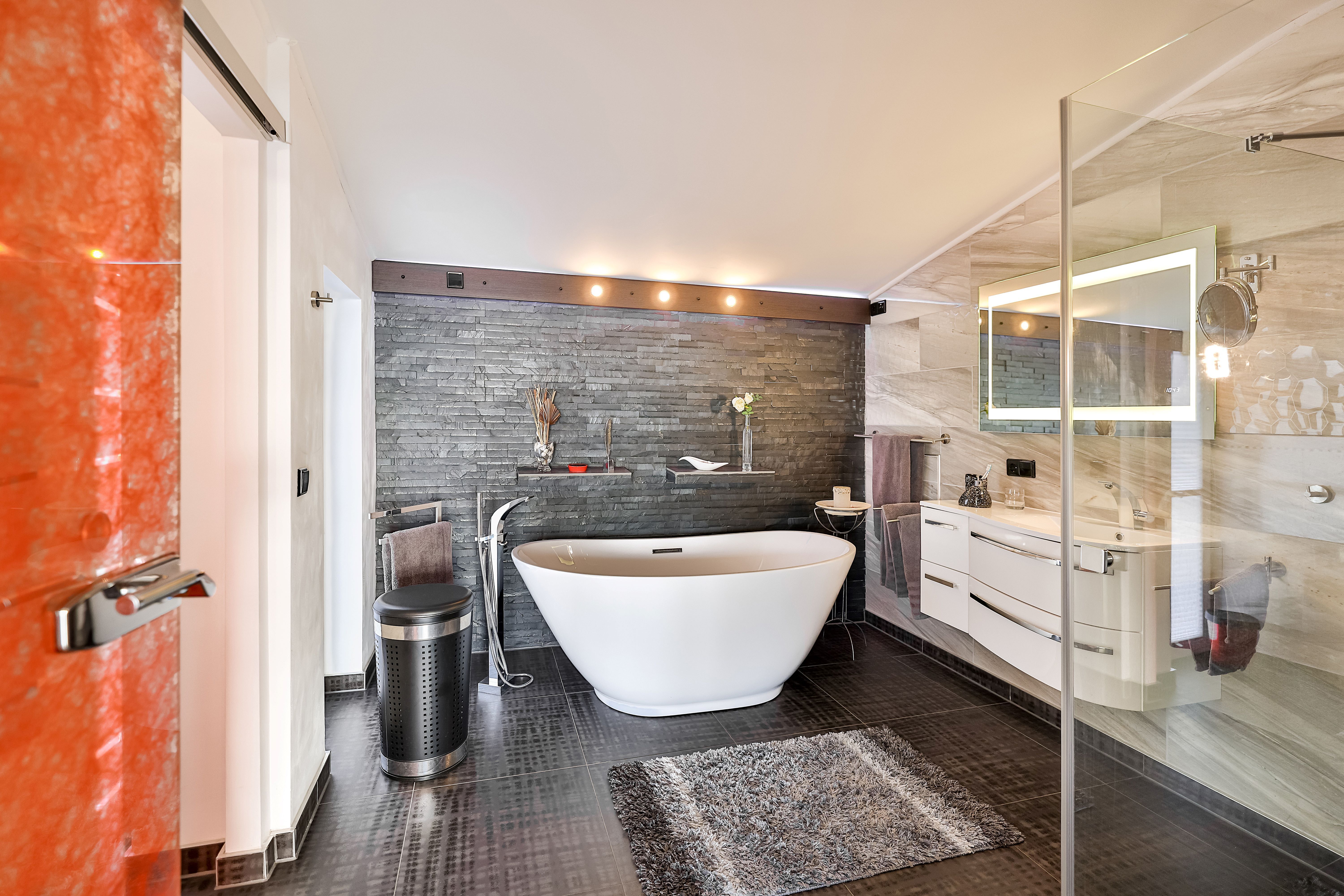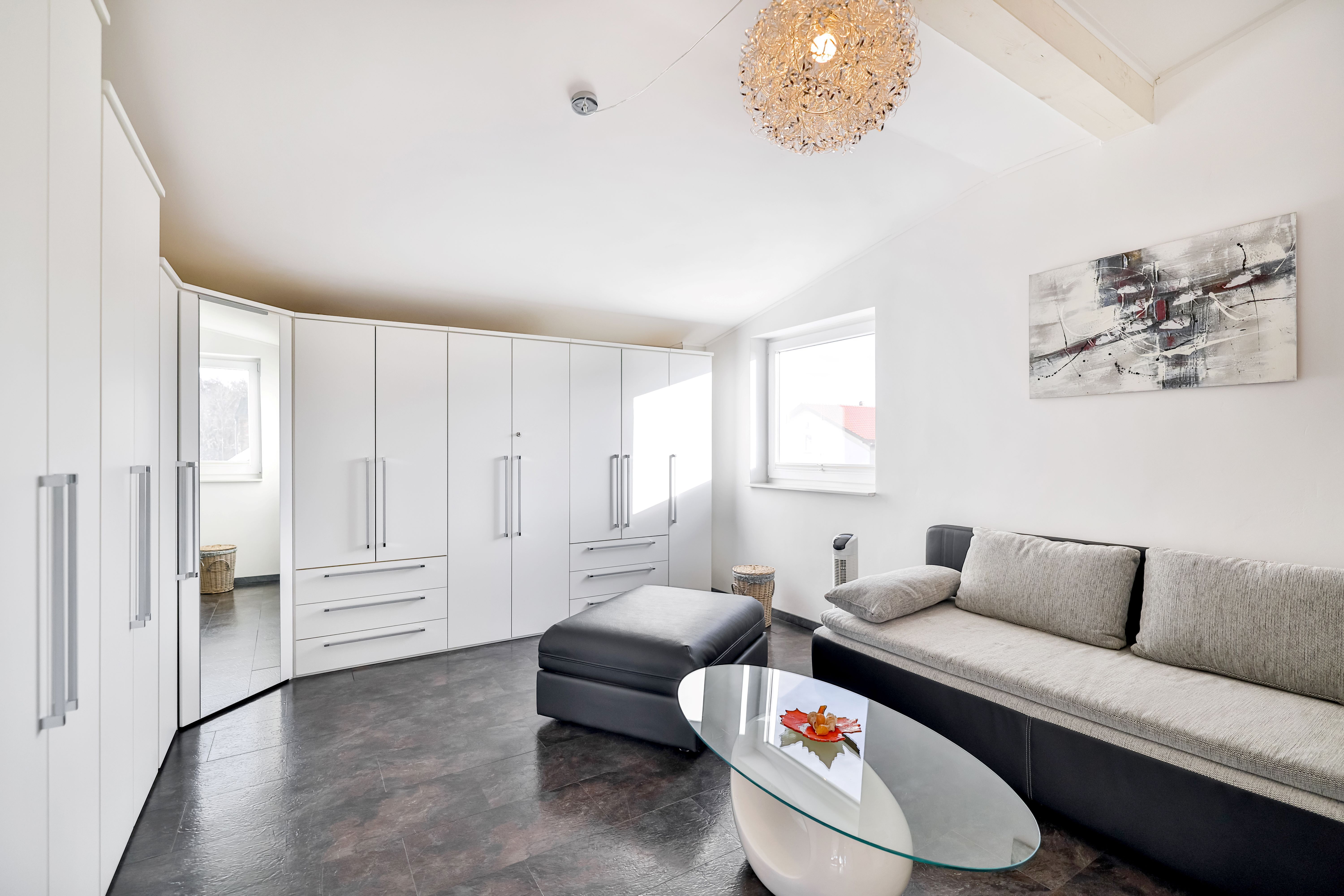 Die Ferienwohnung Atlantis befindet sich im Erdgeschoß und hat einen eigenen Hauseingang. In das große Wohnzimmer sind die Küche und der Essbereich eingegliedert. Das Schlafzimmer mit einem Doppelbett und das große Badezimmer mit der Rotlicht-Sauna sind jeweils vom Flur und vom Wohnzimmern einzeln zu betreten.
