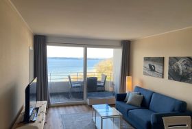 Genießen Sie Ihren Urlaub in dem liebevoll eingerichteten Studio-Apartment Svea mit 2 Balkonen und mit einem atemberaubenden Panoramablick auf die Flensburger Förde. Das Apartment wurde aufwändig renoviert und komfortabel ausgestattet. Es erwartet Sie eine hochwertige neue Küche und ein neuer Fußboden.Der Wohnbereich verfügt über eine bequeme Schlafcouch (1,40 cm breite Schlaffläche). Ein weiteres Kinderbett ist vorhanden. Das Schlafzimmer ist mit einem bequemen Boxspringbett ausgestattet. Auf den Parkdecks des Intermar-Gebäudes stehen eine begrenzte Zahl kostenfrei nutzbarer Parkplätze zur Verfügung. Eine feste Zuordnung oder eine Reservierung ist leider nicht möglich. Auch E-Bikes können dort sicher untergestellt werden. Ein Frühstück kann zwar nicht zum Apartment dazugebucht werden, jedoch befindet sich im Erdgeschoss des Gebäudes das Gudlak - mit Frühstücksmöglichkeit, Restaurant und Strandbar - in dem man Sie herzlich willkommen heißt.