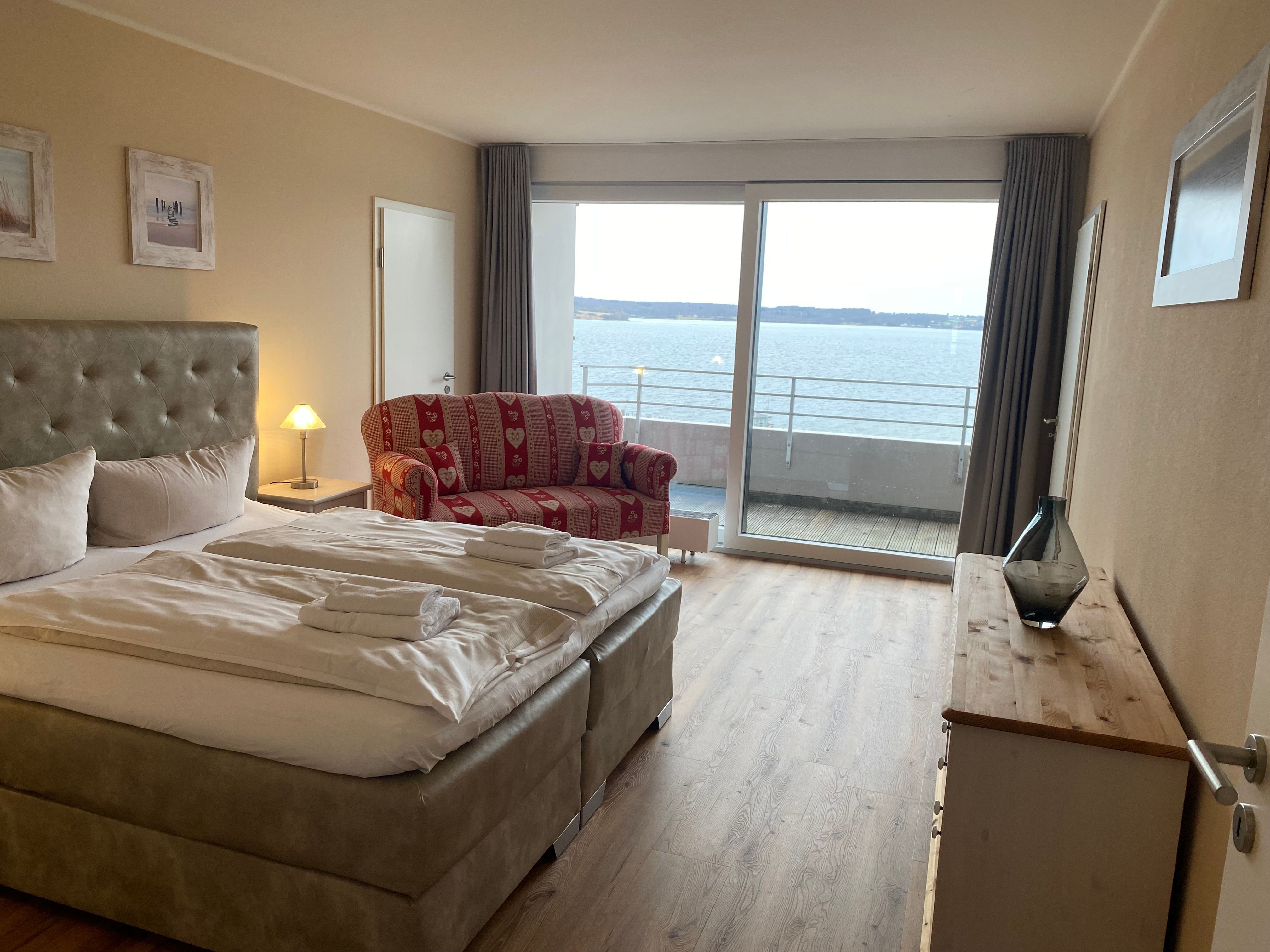 Das private Apartment befindet sich im Hotelgebäude Intermar und liegt direkt an der Promenade der Flensburger Förde/ Ostsee in Glücksburg.