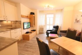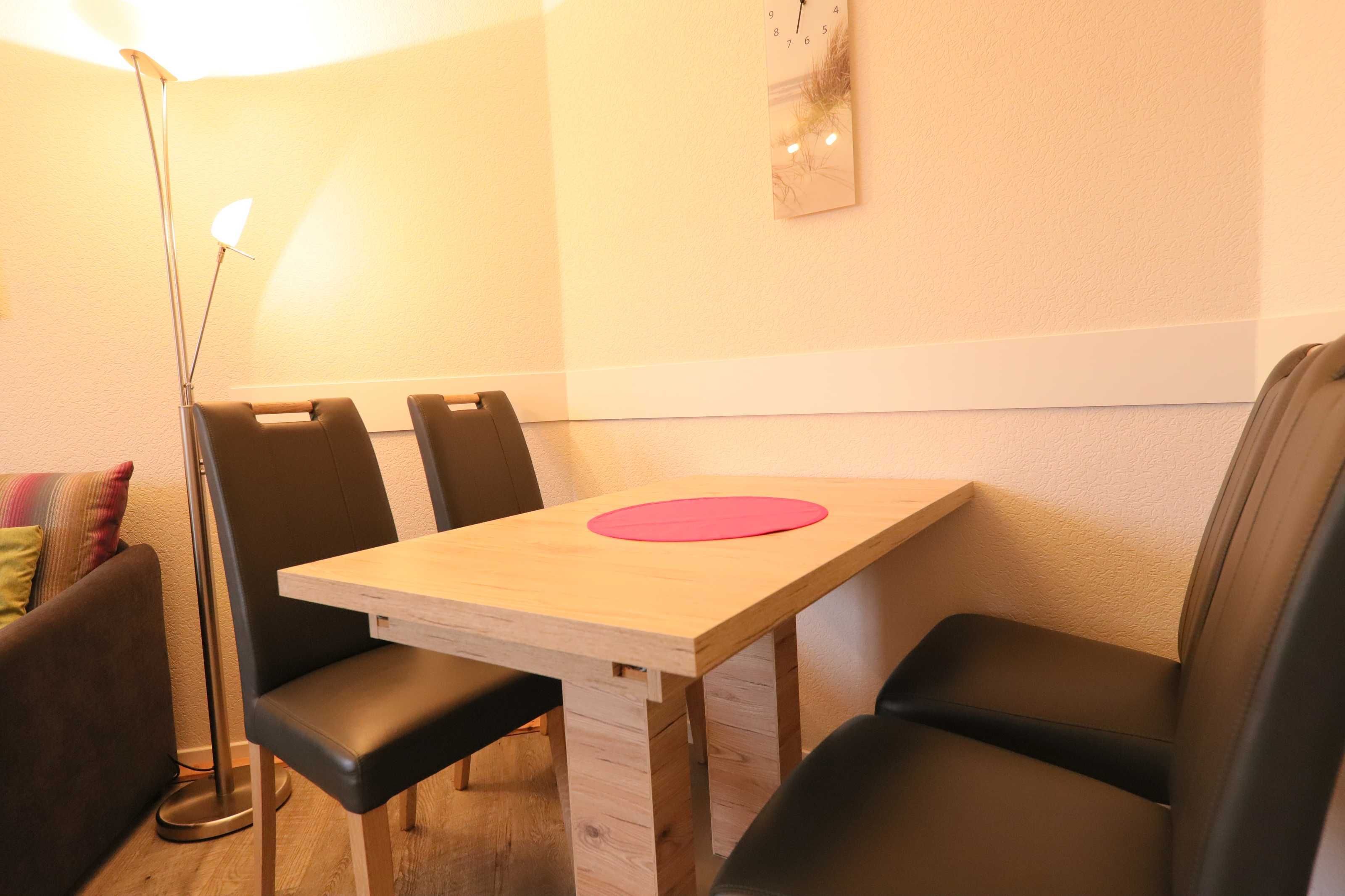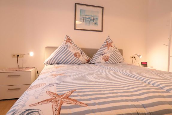 Die ebenerdige Ferienwohnung Boje 5 verfügt über 55 m² Wohnfläche und befindet sich in zentraler Lage direkt in Schillig, fußnah zu alle Einrichtungen des täglichen Bedarfs. Bis zum Sandstrand in Schillig ist es nur ein Katzensprung. Die Wohnung ist bestens geeignet für einen Erholungsurlaub für 4 Personen mit zusätzlichem Kleinkind. Ankommen und wohlfühlen! In die Wohnung gelangen Sie durch einen separaten Eingang. Die Küche ist offen zum Wohnbereich und mit Geschirrspülmaschine, Cerankochfeld, Microwelle, Toaster, Kaffeemaschine sowie Wasserkocher und Kühl-Gefrier-Kombi ausgestattet. Der Wohnbereich mit integriertem Essplatz ist hell und offen gestaltet. Angrenzend gelangen Sie auf die sonnige Terrasse, die zum erholsamen Verweilen einlädt. Von hier aus können Sie die frische Nordseebrise schon riechen... Die Wohnung verfügt über zwei separate Schlafzimmer. Das Elternschlafzimmer ist mit einem Doppelbett ausgestattet. Das zweite Schlafzimmer verfügt über zwei Einzelbetten. Das Badezimmer verfügt über eine bodennahe Dusche und ein WC. Ein eigener Parkplatz ist direkt am Haus.