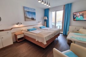 Die Ferienwohnung bietet Platz für maximal 2 Personen und erstreckt sich auf 28 m². Sie befindet sich in der Yachthafenresidenz und liegt im 2. Obergeschoss.
