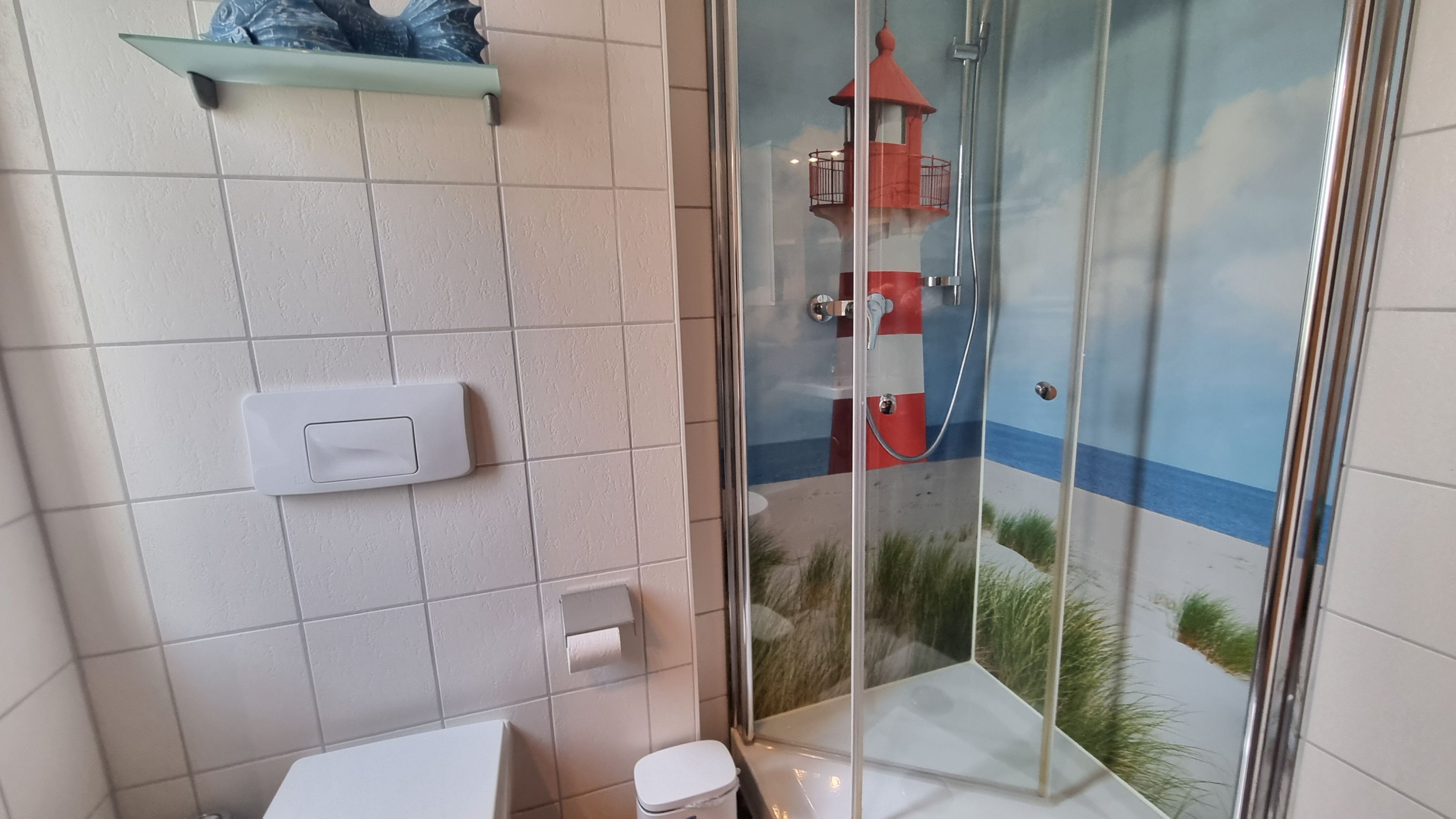 Die komplette Wohnung ist mit Laminat ausgelegt. Das Duschbad/WC ergänzt die Ferienwohnung.