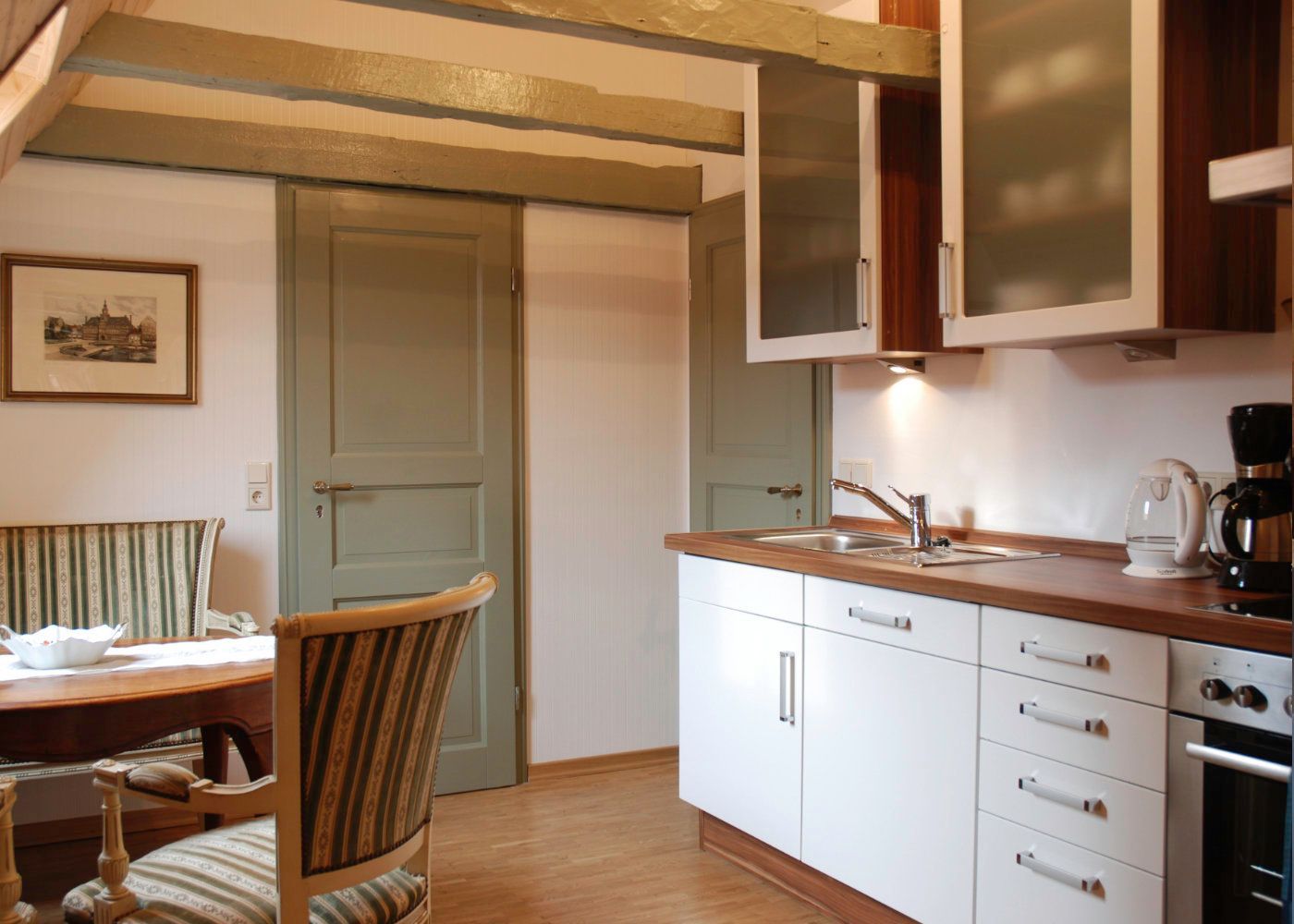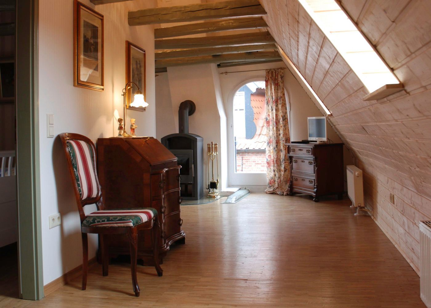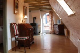 Die Wohnung Rapunzel befindet sich im Dachgeschoss des Märchenhauses. Sie verfügt über eine vollausgestattete Küche, Bad/WC, ein gemütliches Schlafzimmer mit Doppelbett und ein komfortables Wohnzimmer mit modernen und stilvollen Antiquitäten-Möbeln. Im Wohnzimmer befindet sich ein Schlafsofa und steht als Zustellbett zur Verfügung.