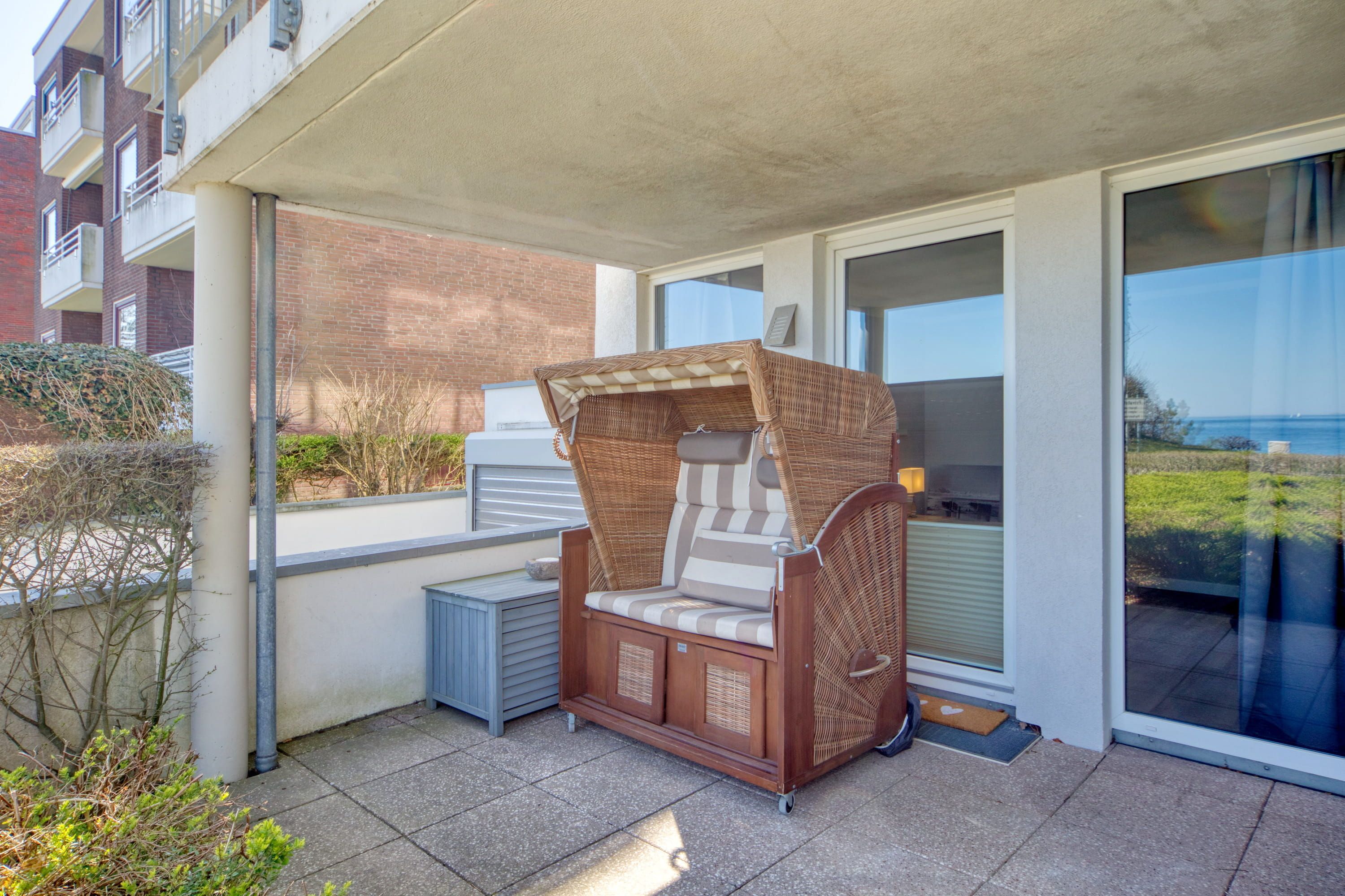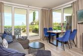 3-Zimmer-Ferienwohnung, ca. 66 m², mit Duschbad, zwei Terrassen, Fahrstuhl und Tiefgaragenstellplatz, für bis zu 3 Personen.