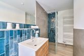 (1,80 x 2,00m) und einem Flachbildfernseher ausgestattet. Von hier erreichen Sie die zweite Terrasse. Ein weiteres Schlafzimmer ist mit einem Doppelbett (1,40 x 2,00m) sowie mit einem TV eingerichtet. Diese Ferienwohnung hat ein großes, tageslichtreiches Bad mit ebenerdiger Dusche und ein separates WC. Im Keller des Hauses befinden sich Waschmaschine und Wäschetrockner, beide sind über einen Münzzähler zu bedienen.