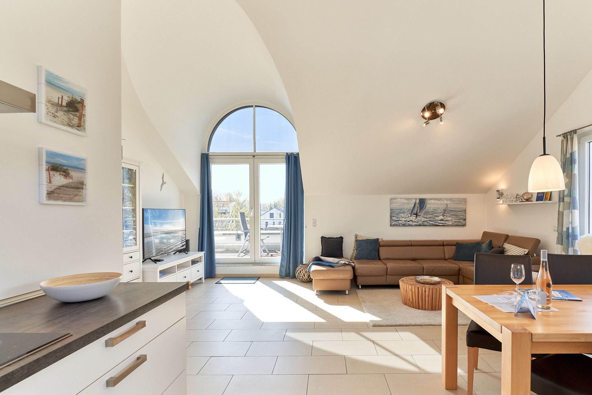 3-Zimmer-Ferienwohnung, ca. 88 m², ein Ostseetraum mit Sonnenterrasse, Duschbad, Waschmaschine, PKW-Stellplatz und Fahrstuhl, für bis zu 4 Personen.