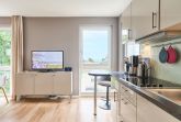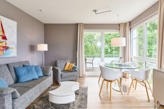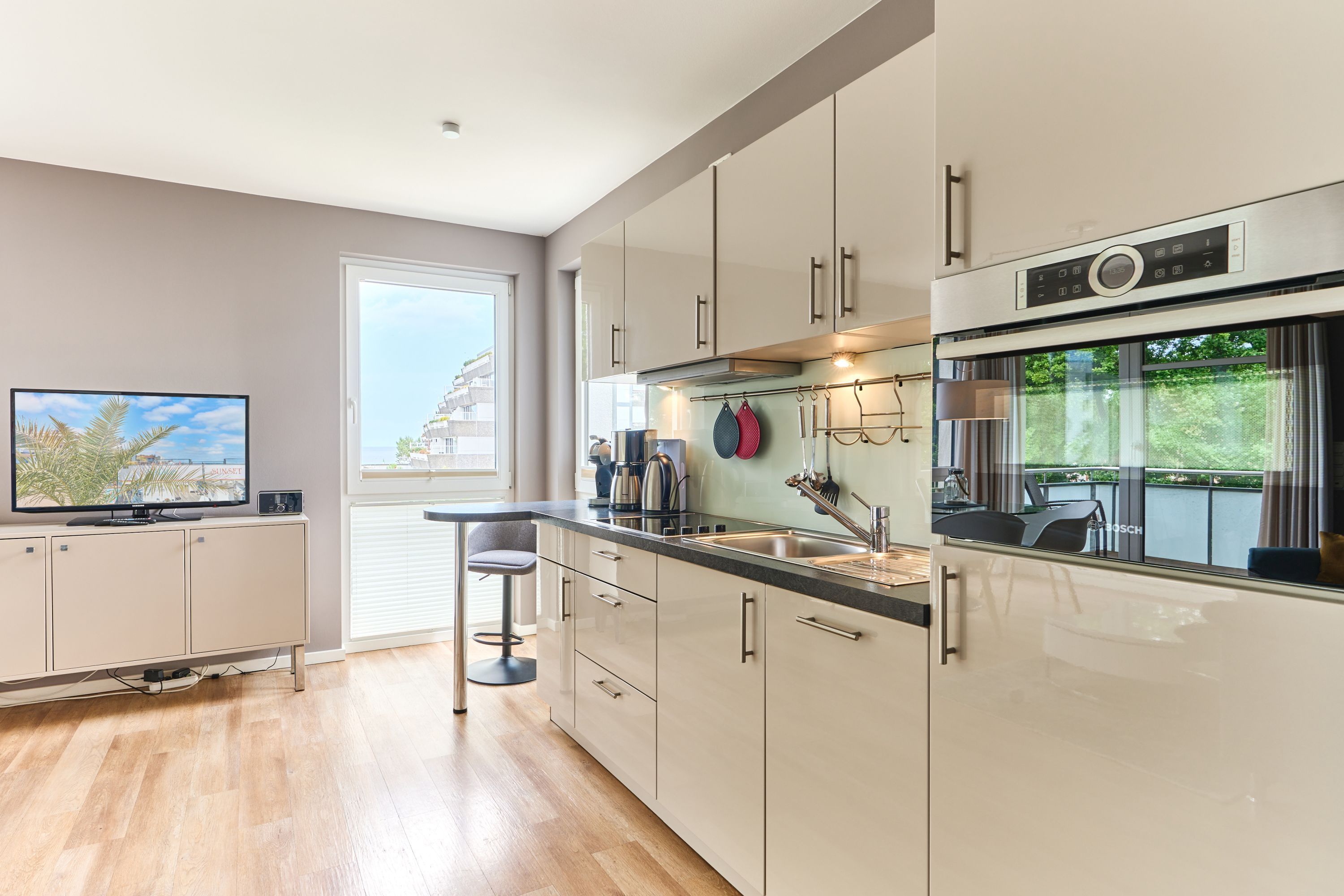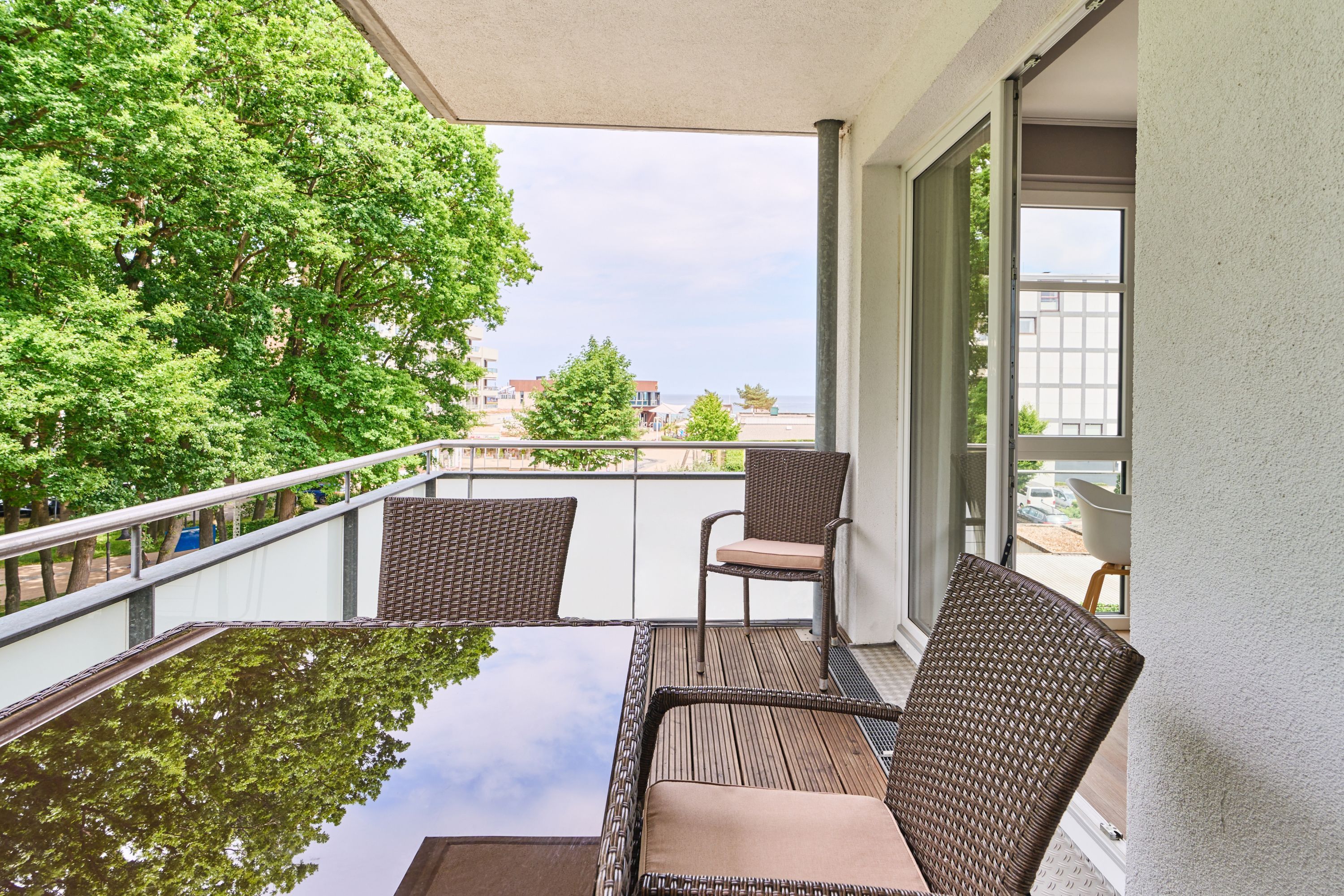 Diese geschmackvoll eingerichtete Ferienwohnung bietet Ihnen einen gemütlichen Wohn-Essbereich. Genießen Sie den Blick auf die Ostsee schon vom Esstisch aus. Die Couch lässt sich mit nur wenigen Handgriffen in eine bequeme Schlafcouch verwandeln. Neben dem Flachbildfernseher und dem 3D-BluRay-Player steht Ihnen ein CD-Player zur Verfügung. Kostenloses WLAN ist selbstverständlich. Der überdachte Balkon mit Blick auf die Ostsee ist mit Tisch und Stühlen ausgestattet. Die moderne Küche lässt keine Wünsche offen. Neben der Filterkaffeemaschine steht Ihnen hier noch zusätzlich eine Dolce-Gusto-Maschine zur Verfügung. Im Schlafzimmer stehen ein bequemes Doppelbett (1,80 x 2,00m) sowie ein geräumiger Schrank. Zusätzlich steht Ihnen auch hier ein Flachbildfernseher zur Verfügung. Auch vom Schlafzimmer haben Sie Zugang zum Balkon. Das Badezimmer verfügt über eine bodentiefe Dusche und einen großen Spiegel. Neben der Fußbodenheizung ist hier ein zusätzlicher Handtuchheizkörper angebracht. Die gesamte Wohnung verfügt über bodentiefe Fenster.