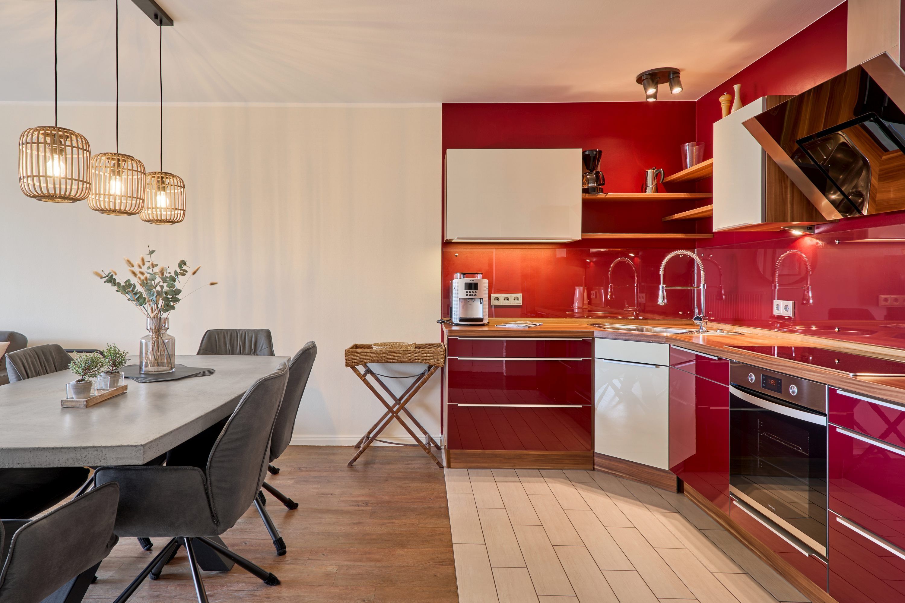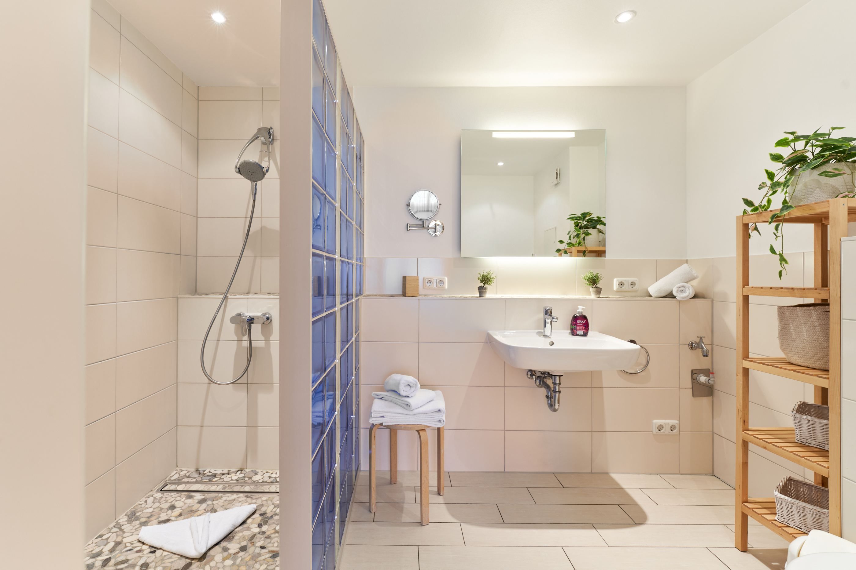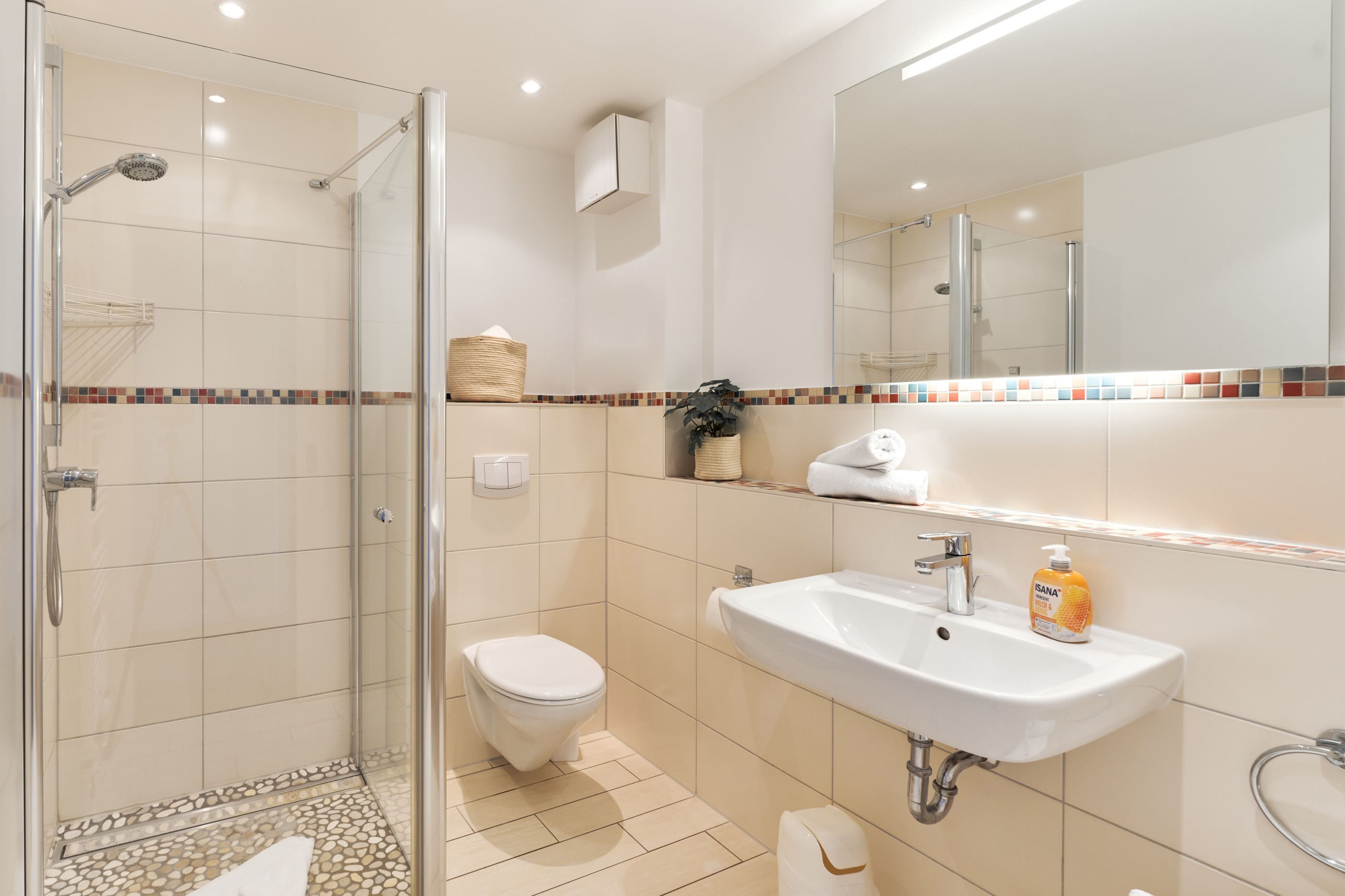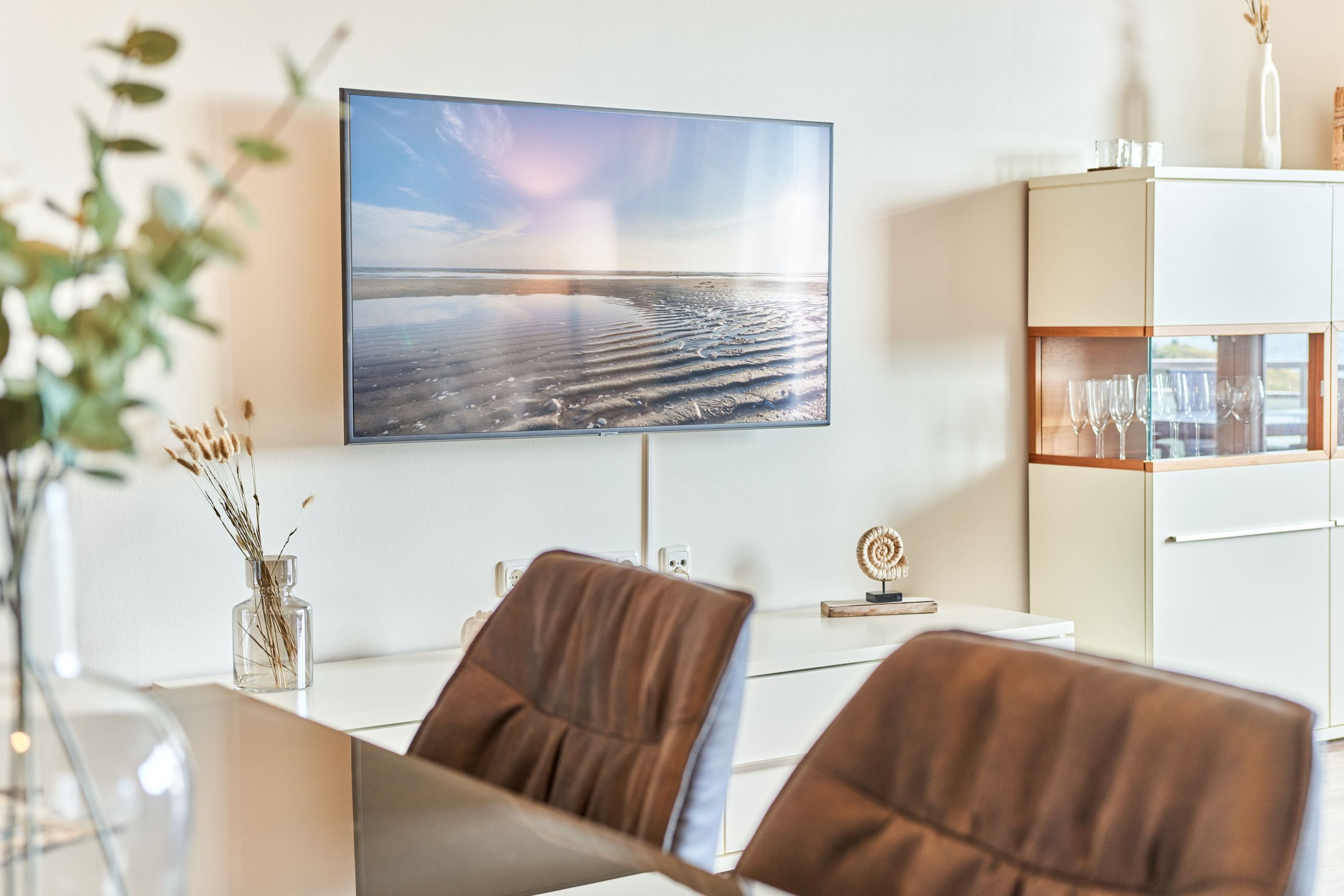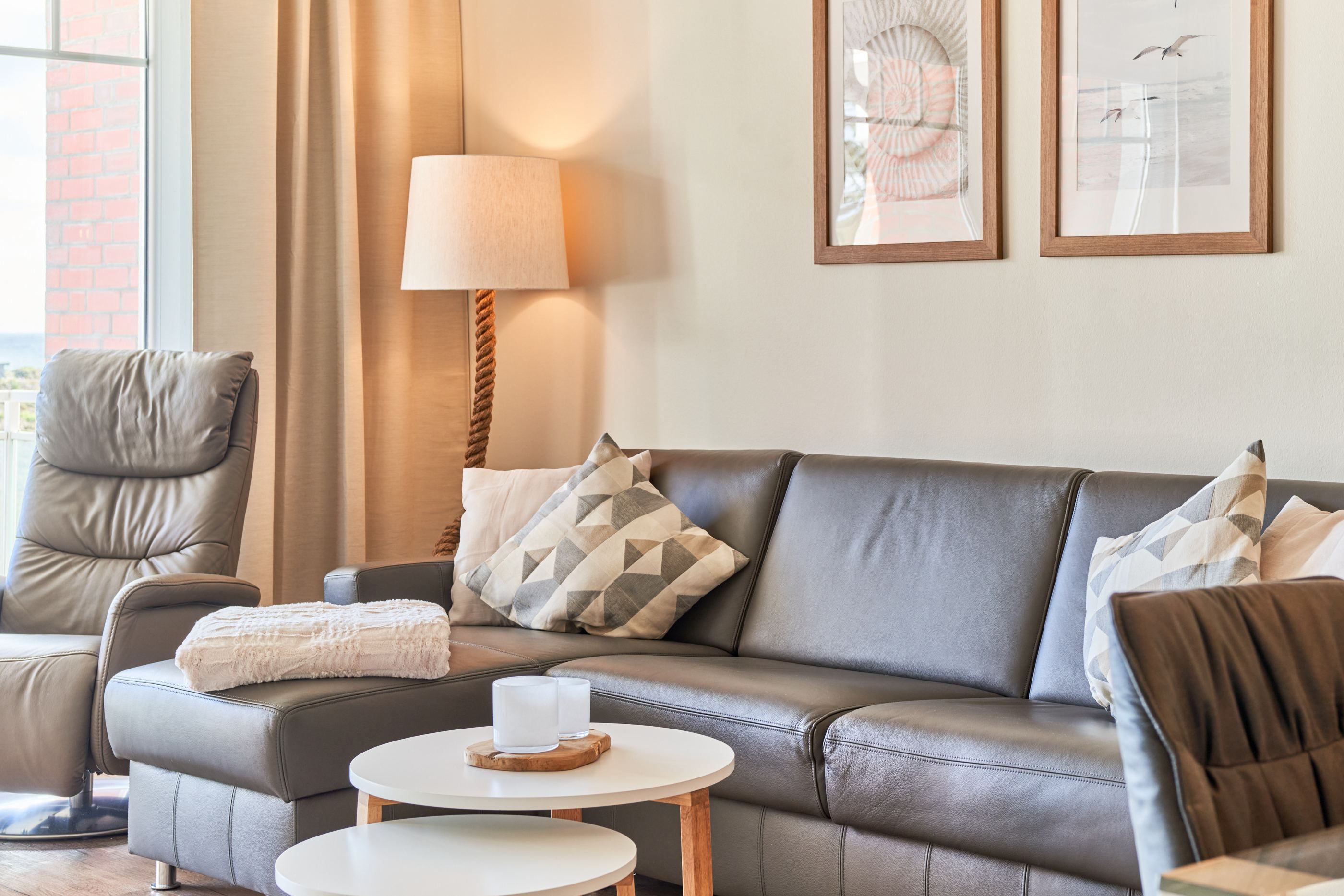 3-Zimmer-Ferienwohnung, ca. 98 m², zwei Schlafzimmer, zwei Duschbäder, Tiefgaragenstellplatz mit gebührenpflichtiger E-Ladestation (Durchfahrtshöhe 1,90 m), Fahrstuhl, für bis zu 4 Personen