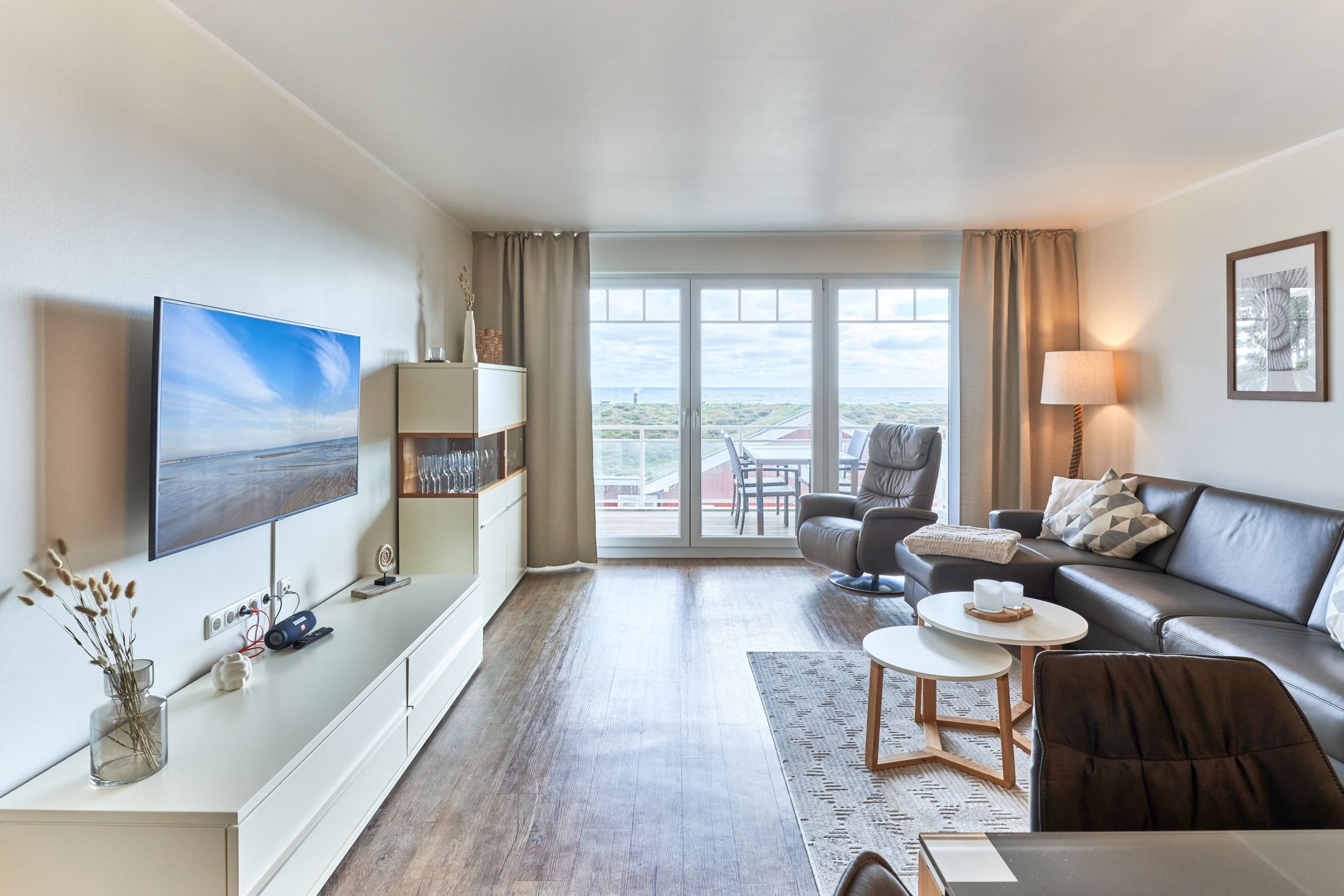Diese Ferienwohnung liegt nur wenige Schritte vom Strand entfernt, direkt an der Dünenmeile. Sie hat einen Balkon Richtung Ostsee und zwei kleine Balkone Richtung Kurpark-Westen. Durch die großen Duschen und die unterfahrbaren Waschbecken in den Bädern eignet sich diese Ferienwohnung für Rollstuhlfahrer. Der Tiefgaragenstellplatz sorgt für eine sichere Unterbringung Ihres Autos. Für die Fahrräder befindet sich ein abschließbarer Fahrradraum im Gemeinschaftskeller. Mit dem Fahrstuhl gelangen Sie bequem in Ihre Ferienwohnung. In der Strandkorbsaison (15.05. 15.09.) steht Ihnen für die Zeit Ihres Aufenthaltes ein kostenloser Strandkorb zur Verfügung.