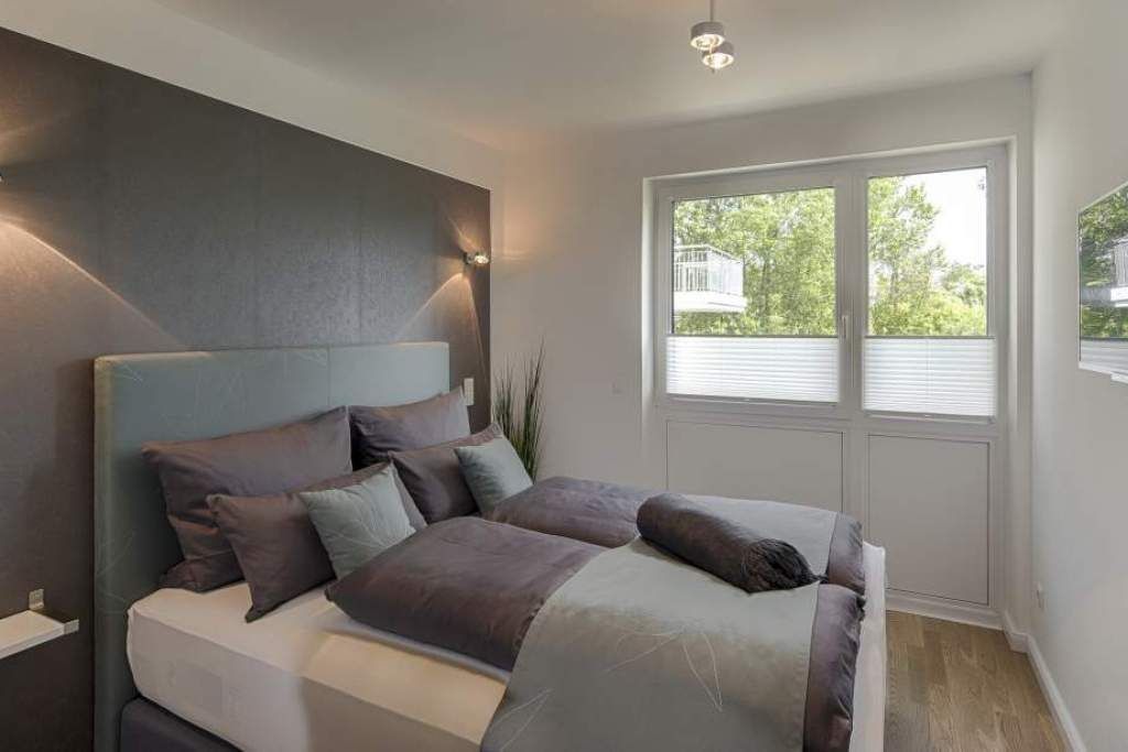 Oceans No. 12 in der Kurparkresidenz, 3-Zimmer-Ferienwohnung, 82 qm, mit zwei Schlafzimmern, zwei Terrassen, zwei Bädern, eigener Waschmaschine und Wäschetrockner und einem Tiefgaragenstellplatz (Durchfahrtshöhe 2,11 m), für bis zu 4 Personen.