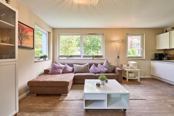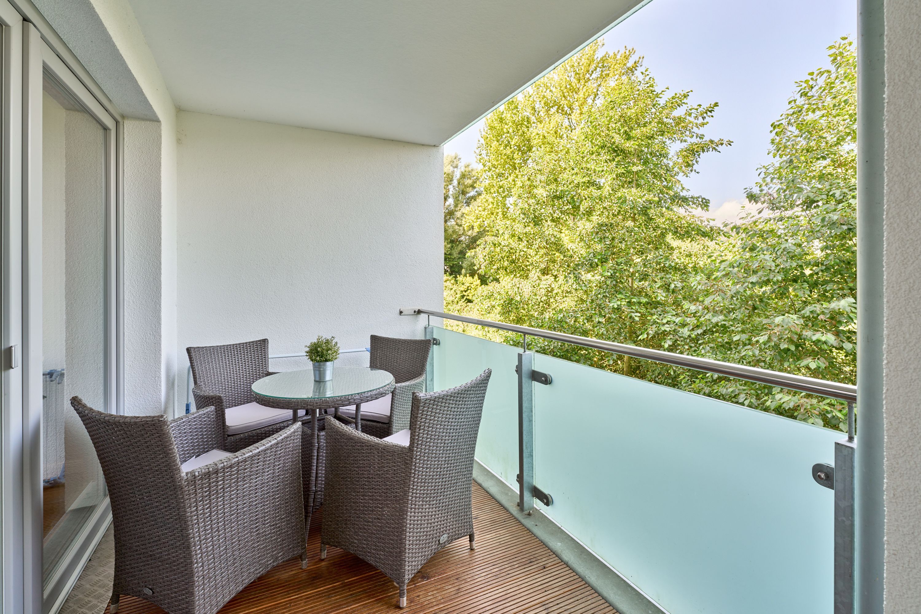 2-Zimmer-Ferienwohnung, ca. 50 m², für bis zu 3 Personen, mit Balkon, Duschbad, Tiefgaragenstellplatz (Durchfahrtshöhe 2,12 m)