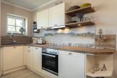 Der Wohn-Essbereich ist mit einer bequemen Couch (welche schnell in ein komfortables Schlafsofa umgebaut werden kann), einem Sessel sowie Beistelltischchen eingerichtet. Neben dem Flachbildfernseher steht Ihnen selbstverständlich kostenloses WLAN zur Verfügung. Die helle Küche mit angrenzendem Esstisch ist komplett ausgestattet. Schöne überdachte Loggia mit Morgensonne und Blick auf die Ostsee. Hier stehen Ihnen Tisch und Stühle zur Verfügung. Das Schlafzimmer ist mit einem Doppelbett (1,60 x 2,00m) und einem geräumigen Kleiderschrank sowie einem Flachbildfernseher ausgestattet. Auch von hier aus haben Sie einen Ostseeblick und Zugang zur Loggia. Das Badezimmer verfügt über eine bodentiefe Dusche und einen Handtuchheizkörper. Eine sehr angenehme Lösung in dieser Wohnung ist das separate WC.