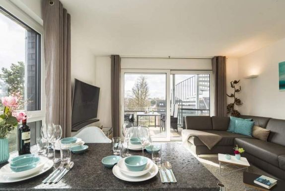 Eine stylische Design-Wohnung, die Sie dank hochwertigem Stokke-Kinderhochstuhl, Kindergeschirr und -besteck und Steckdosen mit integrierter Kindersicherung auch gerne mit Ihrem Kind buchen können. Der ganztägig sonnige, teilüberdachte Süd-West-Balkon mit einem barrierefreundlichen Zugang, ein Bad mit bodengleicher Regendusche und Fenster, Handtuchheizkörper und WLAN-Radio, Fußbodenheizung, Feinsteinfliesen sowie Biowandfarbe in der gesamten Wohnung, sorgen für eine behagliche Wohlfühlatmosphäre und lassen Sie magische Momente in Ihrem Urlaub erleben.
