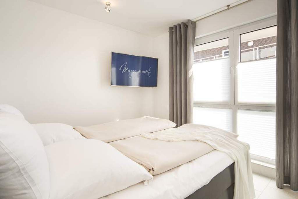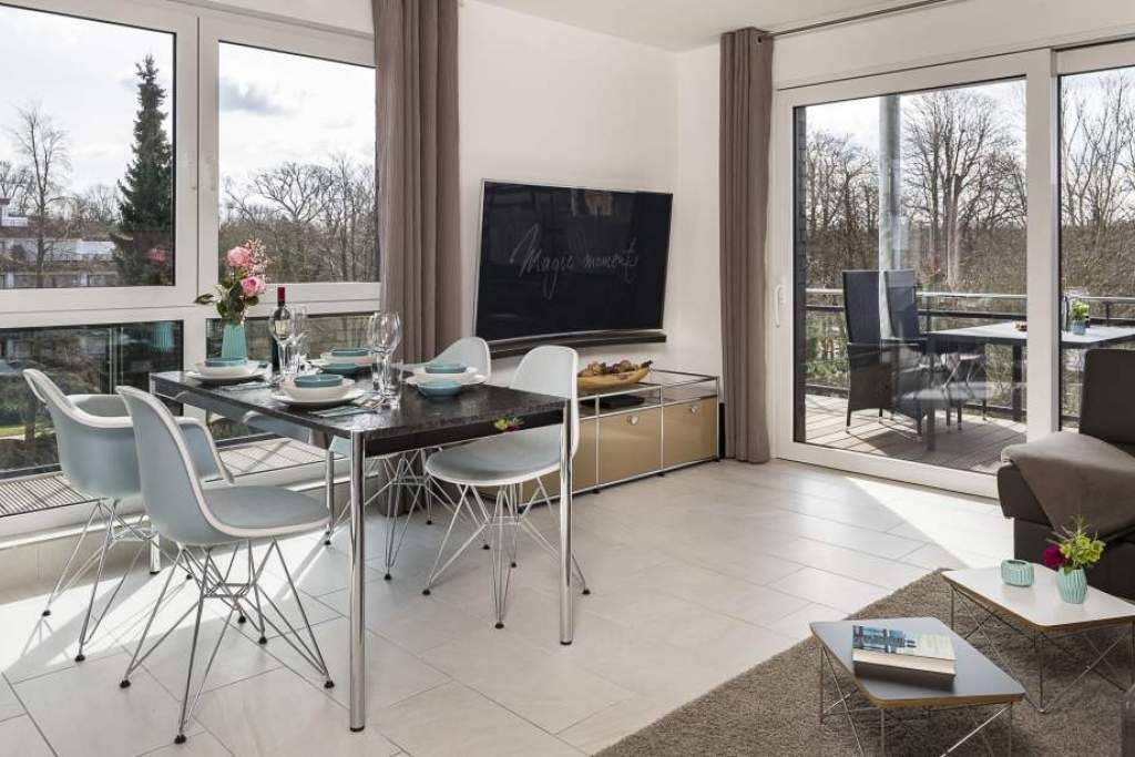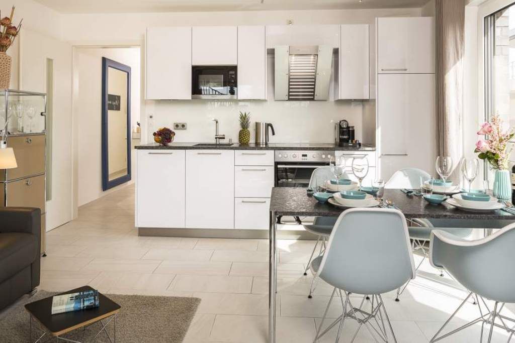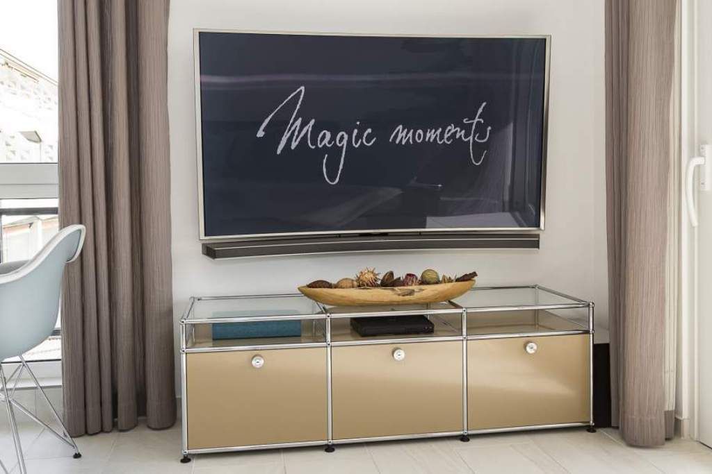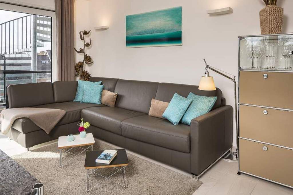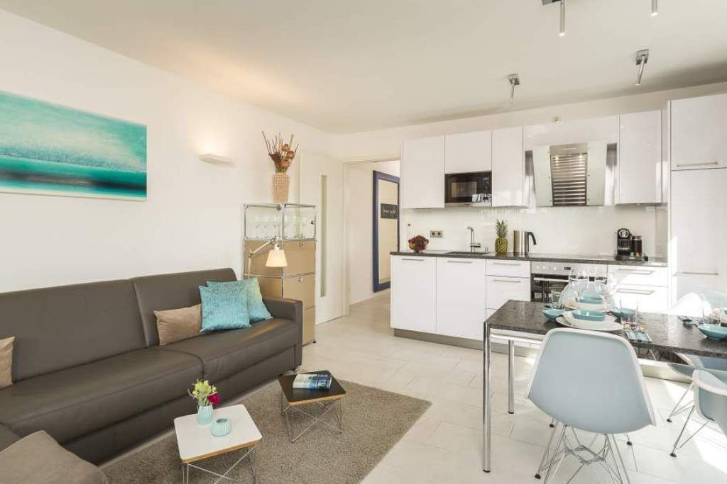 Diese schöne Design-Ferienwohnung zeichnet sich durch eine moderne, luxuriöse und stylische Inneneinrichtung aus, die bis ins Detail aufeinander abgestimmt ist. In der hochwertigen Warendorf-Küche mit Miele-Einbaugeräten, einer Nespresso-Maschine sowie ausgewähltem Rosenthal-Porzellan genießen Sie Ihr Frühstück oder andere kulinarische Höhepunkte. Freuen Sie sich auf Design-Klassiker wie USM Haller ( Esstisch, Vitrine und TV-Board) und Vitra Charles Eames ( Plastic Armchairs mit bequemer Polsterung und Couchtische). Ein Ledersofa mit Longchair, das mit wenigen Handgriffen zu einem vollwertigen Bett ( mit Lattenrost und Bultexmatratze 160x200m) umfunktioniert werden kann, sowie ein hochwertiges Boxspringbett (1,80 x 2,00 m) und ein Entertainment-Paket (Wohnzimmer: Samsung 65 SUHD curved 3D Smart-TV inkl. Soundbar, Schlafzimmer: Samsung 48 UHD Smart TV und kostenloses WLAN) lassen keine Wünsche offen.