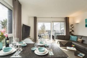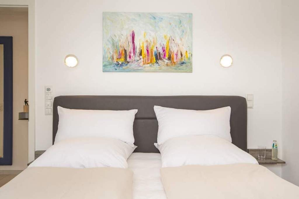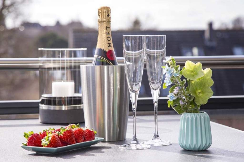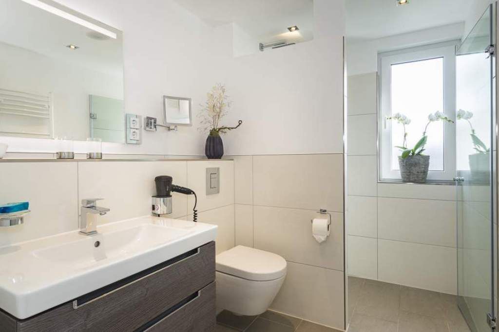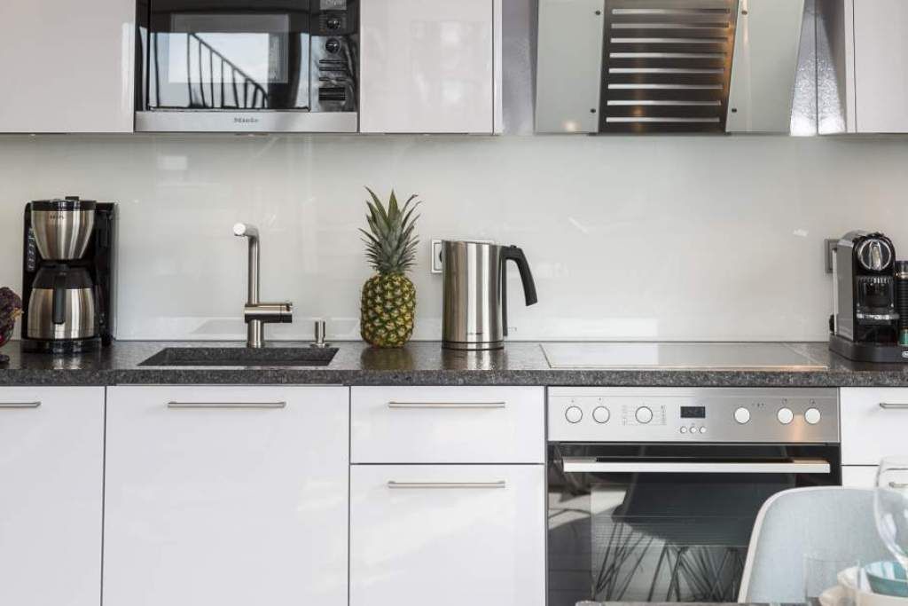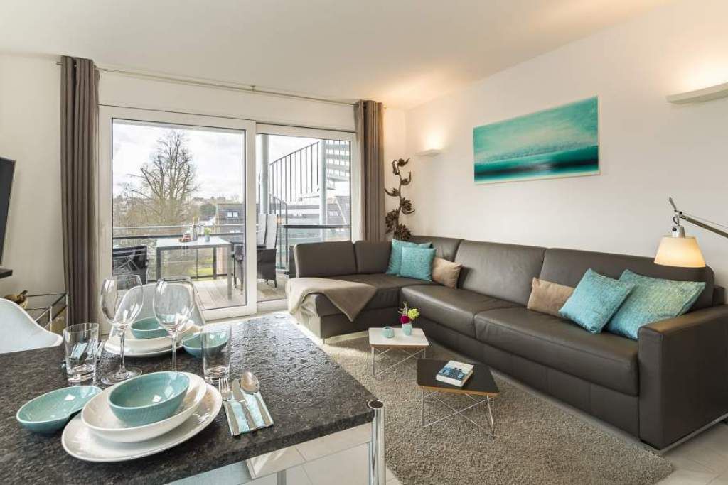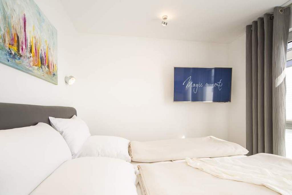 Diese schöne Design-Ferienwohnung zeichnet sich durch eine moderne, luxuriöse und stylische Inneneinrichtung aus, die bis ins Detail aufeinander abgestimmt ist. In der hochwertigen Warendorf-Küche mit Miele-Einbaugeräten, einer Nespresso-Maschine sowie ausgewähltem Rosenthal-Porzellan genießen Sie Ihr Frühstück oder andere kulinarische Höhepunkte. Freuen Sie sich auf Design-Klassiker wie USM Haller ( Esstisch, Vitrine und TV-Board) und Vitra Charles Eames ( Plastic Armchairs mit bequemer Polsterung und Couchtische). Ein Ledersofa mit Longchair, das mit wenigen Handgriffen zu einem vollwertigen Bett ( mit Lattenrost und Bultexmatratze 160x200m) umfunktioniert werden kann, sowie ein hochwertiges Boxspringbett (1,80 x 2,00 m) und ein Entertainment-Paket (Wohnzimmer: Samsung 65 SUHD curved 3D Smart-TV inkl. Soundbar, Schlafzimmer: Samsung 48 UHD Smart TV und kostenloses WLAN) lassen keine Wünsche offen.