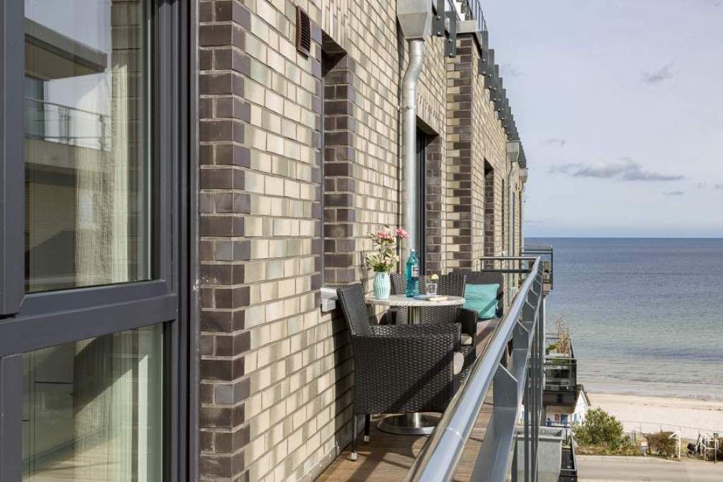 2-Zimmer-Ferienwohnung, ca. 55 m², mit umlaufendem Süd-West-Balkon und Teilmeerblick, Duschbad, Kfz-Außenstellplatz, für bis zu 3 Personen. Entdecken Sie die Ferienwohnung in unserem 360°-Rundgang!