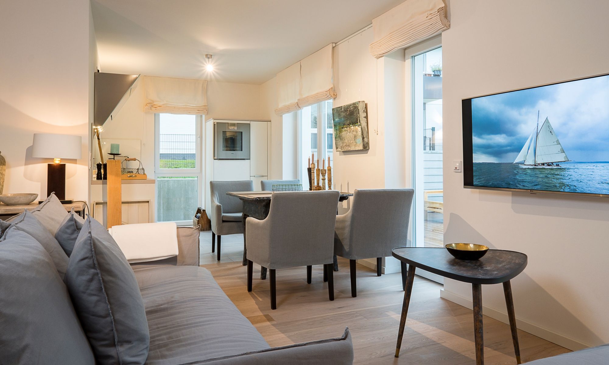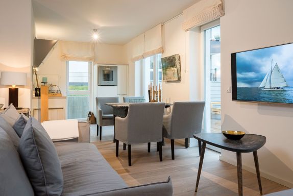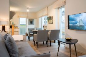 Ihr Feriendomizil ist Bestandteil eines im Sommer 2017 fertiggestellten Hauses, welches nach dem nordischen Bäderstil errichtet wurde und bereits von außen ein richtiger Hingucker ist. Der Strand von Haffkrug liegt mit 80 Metern Entfernung quasi direkt vor Ihrer Haustür. Haffkrug - der älteste Badeort Ostholsteins - und für viele auch der schönste, ist zu jeder Jahreszeit eine Reise wert. Hier können Sie innehalten und einfach nur genießen. Eine gute Kombination aus Tradition und Moderne, aus Behaglichkeit und Kurzweil, aus Seele baumeln lassen und Aktion. Einkaufsmöglichkeiten, Cafés, Restaurants und Bäckereien sowie kleine Geschäfte, die zum Bummeln einladen, sind in wenigen Minuten fußläufig erreichbar. Eine herrliche Promenade lockt zum Verweilen und Erleben. Scharbeutz ist fußläufig gut erreichbar. Timmendorfer Strand und Travemünde sind mit dem Fahrrad oder dem Auto schnell angefahren.