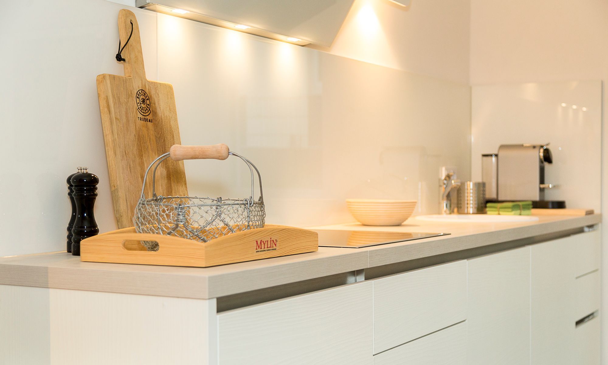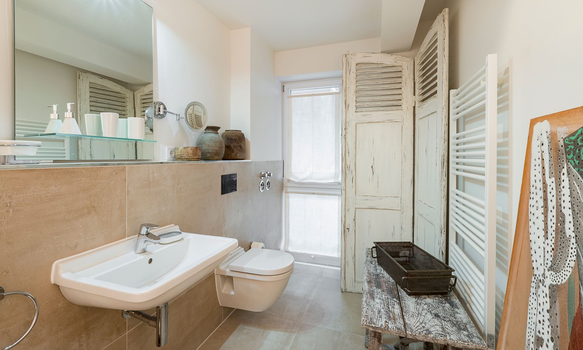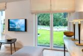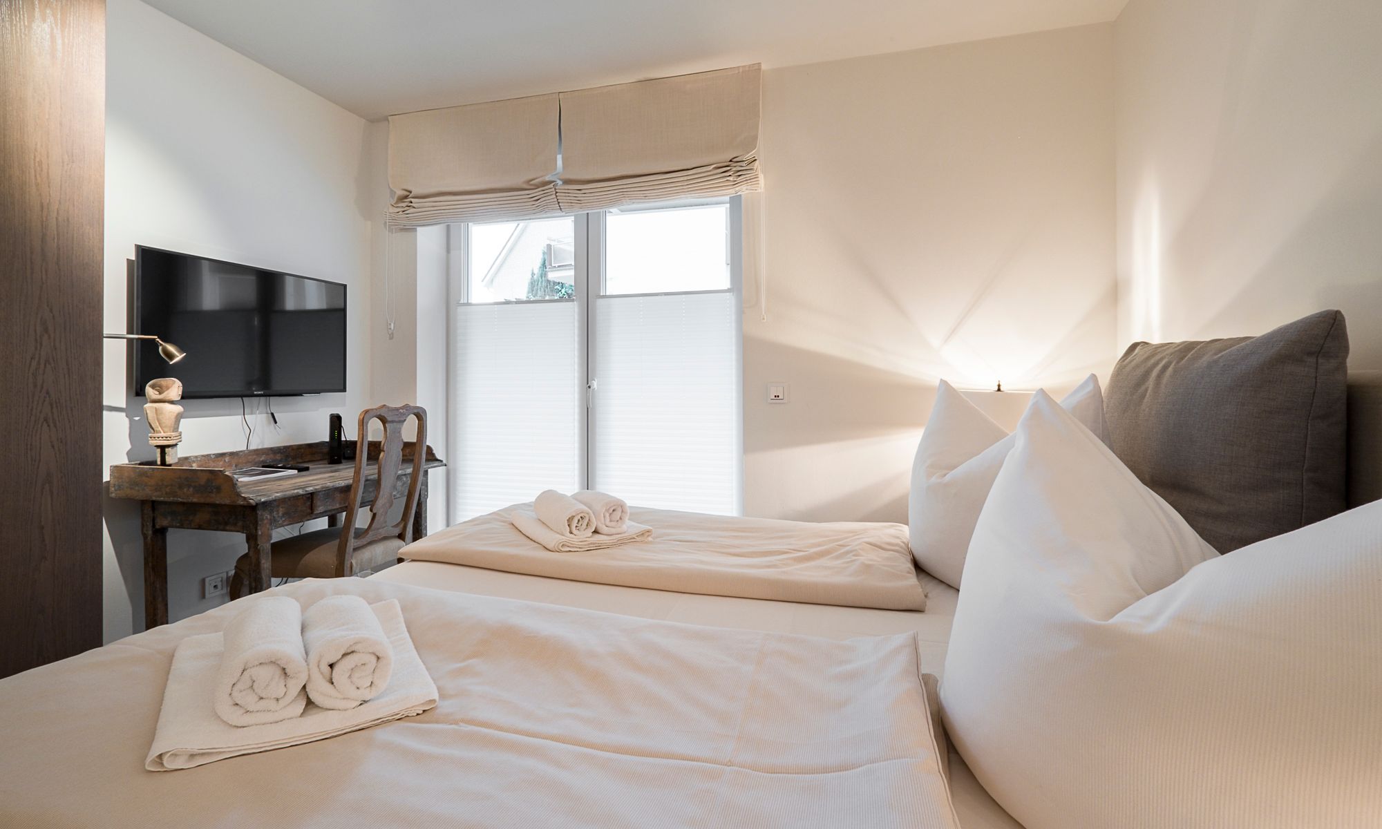 Die Einrichtung ist eine gelungene Mischung aus Modernem und Altem, alles mit einer persönlichen, künstlerischen Note ausgesucht. Vom gemütlichen Sofa (in einfachen Handgriffen entsteht hier ein bequemes Schlafsofa für 2 Personen) geht der Blick über die Terrasse ins Grüne. Der Essplatz mit 4 Polsterstühlen lädt zu geselligen Mahlzeiten und zum Verweilen ein. Die vollausgestattete Küche lässt für die Zubereitung Ihrer Mahlzeiten keine Wünsche offen. Sowohl Wohn- als auch Schlafzimmer sind mit einem TV ausgestattet. Das moderne Tageslichtbad ist mit einer ebenerdigen Dusche und einer Badewanne ausgestattet. Auch diesen Raum machen die interessanten Details zu etwas Besonderem. Die im Erdgeschoss gelegene 69 m² große Wohnung ist von der Tiefgarage bequem mit dem Fahrstuhl zu erreichen.